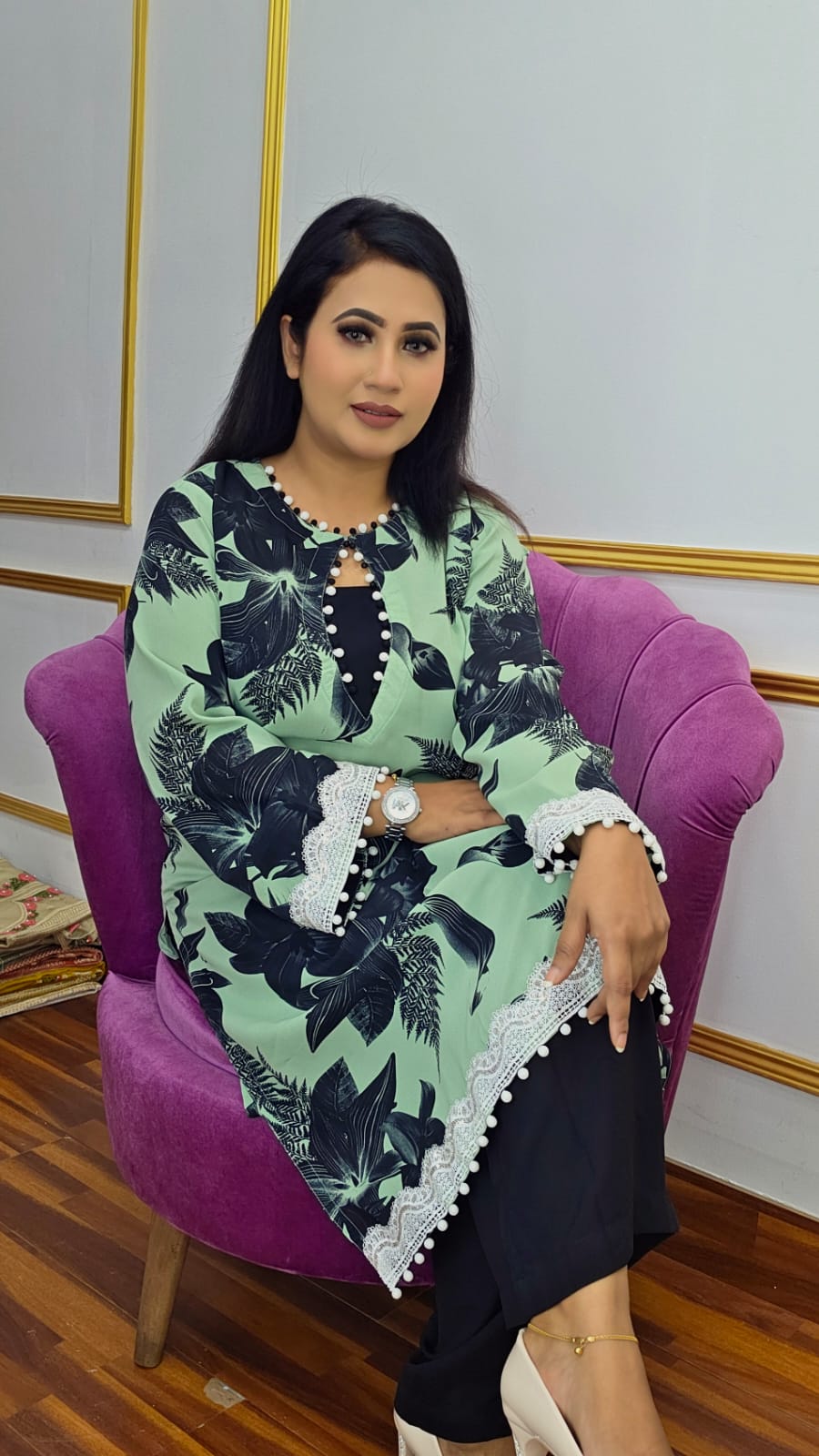 ✅ কোড ও কালার: G1550G — Printed Kameez, Pant Black
