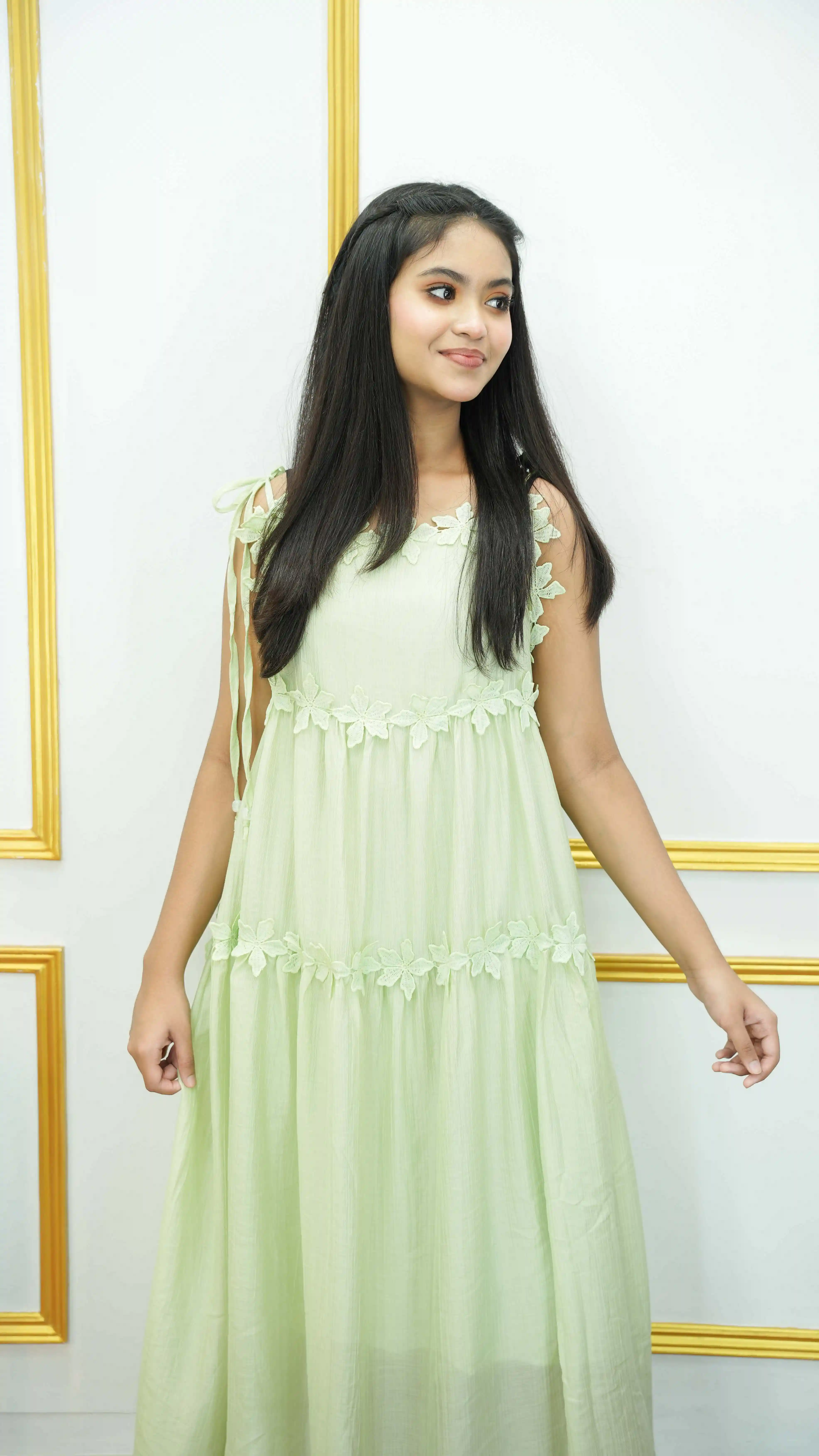 Step into effortless elegance with this Thai Imported Pure Cotton Gown, thoughtfully designed for comfort, style, and everyday wear. Crafted from soft, breathable pure cotton, the gown features a graceful rounded neckline adorned with delicate floral lace, plus a horizontal peach floral appliqué that adds a subtle, feminine charm.
