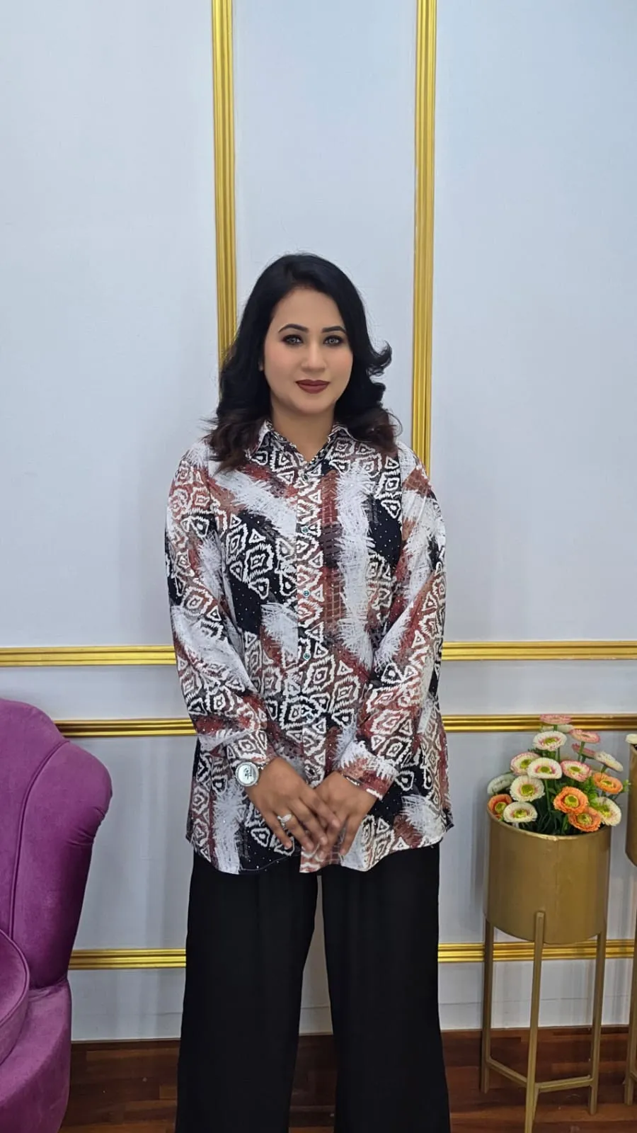 Elevate your everyday style with this premium Women’s Co-ords Set, crafted from high-quality Imported Lilen for comfort and elegance. Designed with a shirt collar, open button front, and subtle stone work, this outfit delivers a polished and fashionable look perfect for casual outings, office wear, and special occasions.