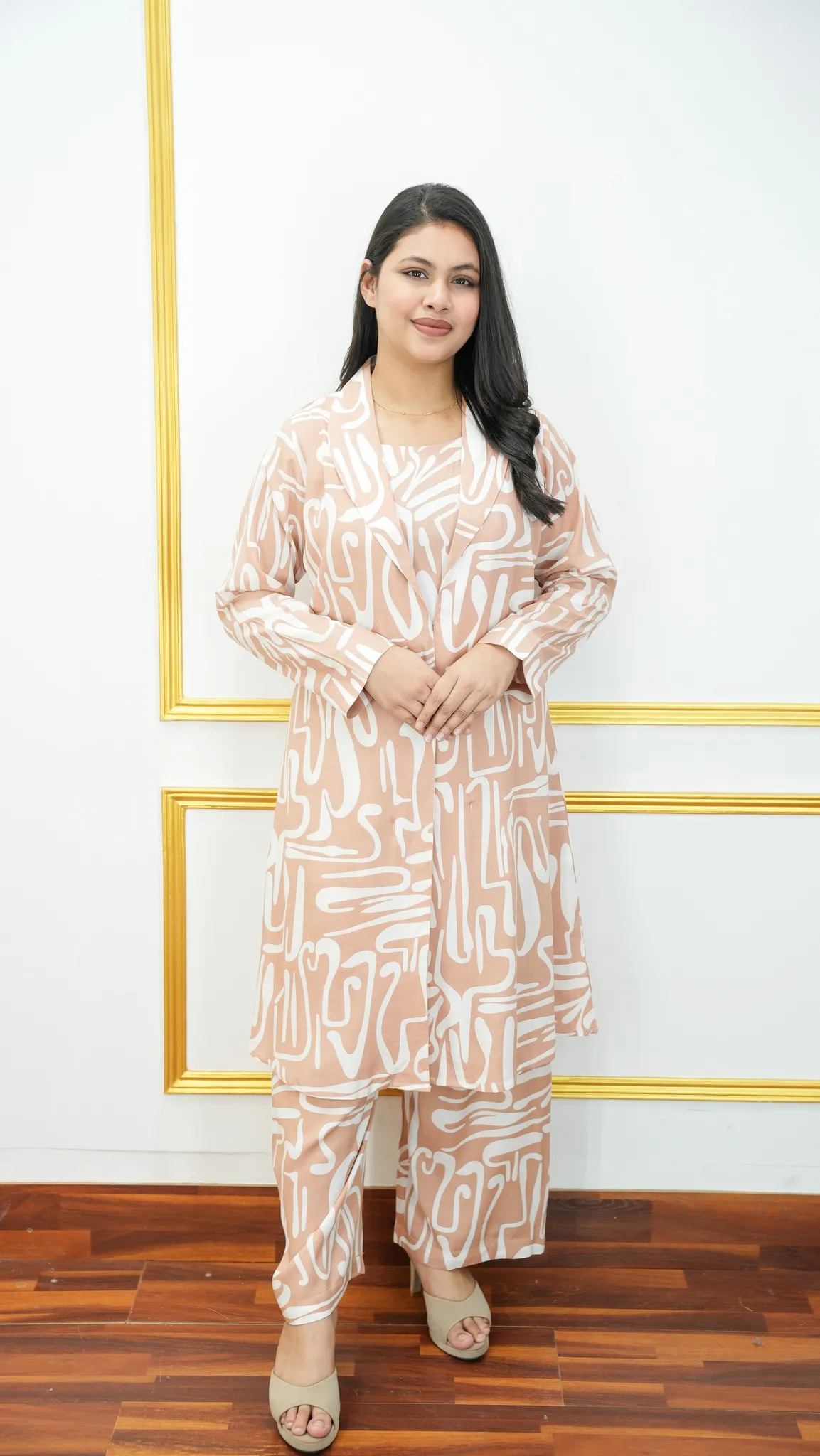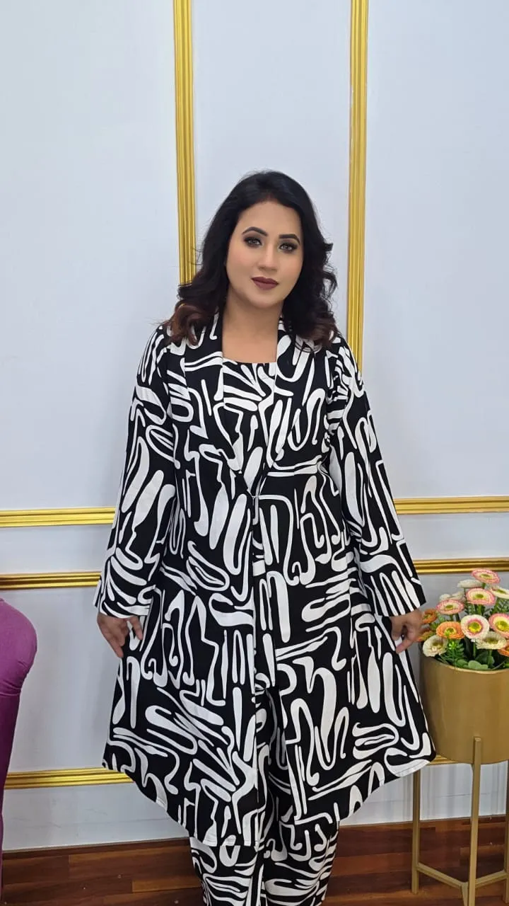 This Stylish Blazer Co-Ords Set, crafted from high-quality Imported Lilen fabric for unmatched comfort and elegance. Designed with a chic Blazer Neck, Double Part front, and Full Sleeve, this co-ords set delivers a sophisticated, trendy look suitable for both casual and semi-formal outings.