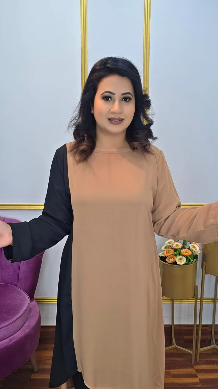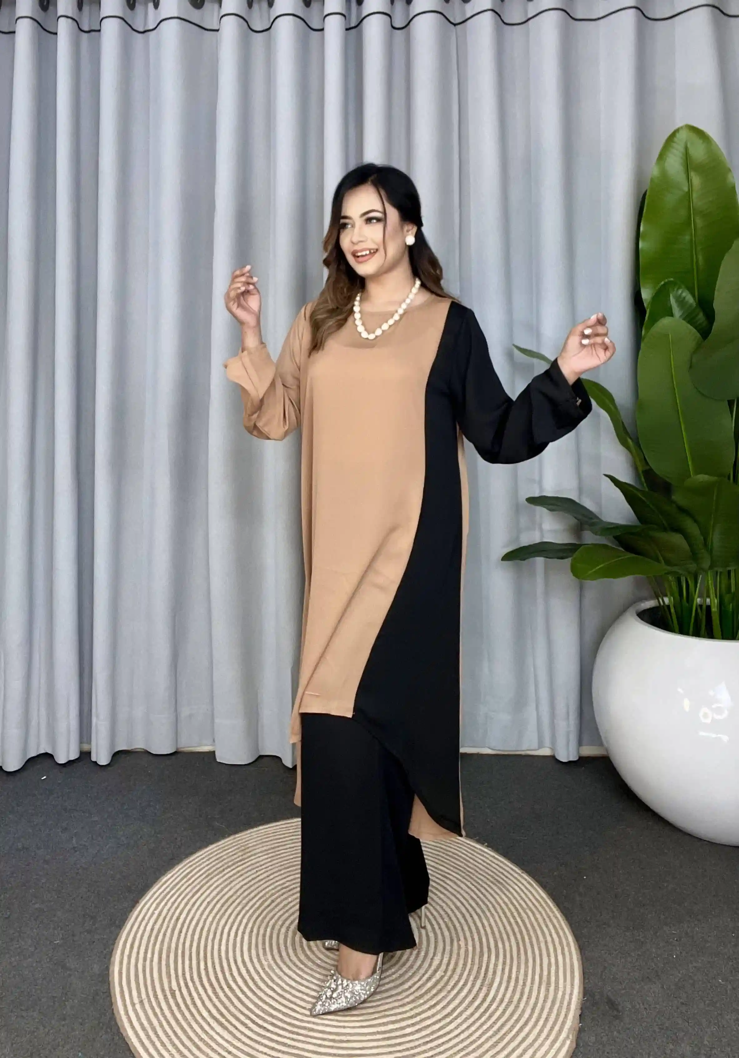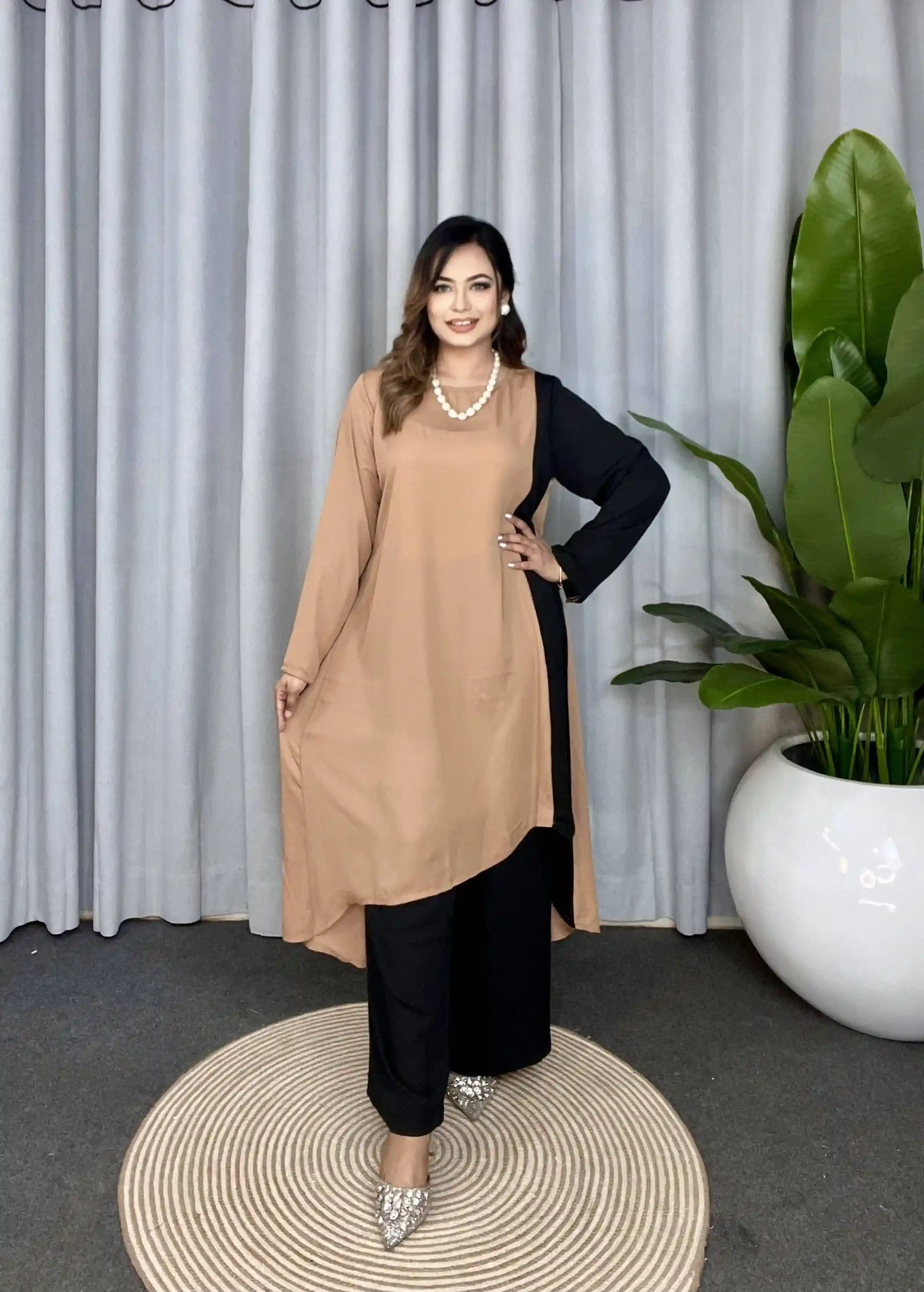 Make a sophisticated statement with this stunning co-ords set crafted from premium Dubai cherry fabric in an elegant black and brown combination. Featuring full sleeves and a versatile two-piece design, this coordinated outfit offers timeless style with modern comfort.