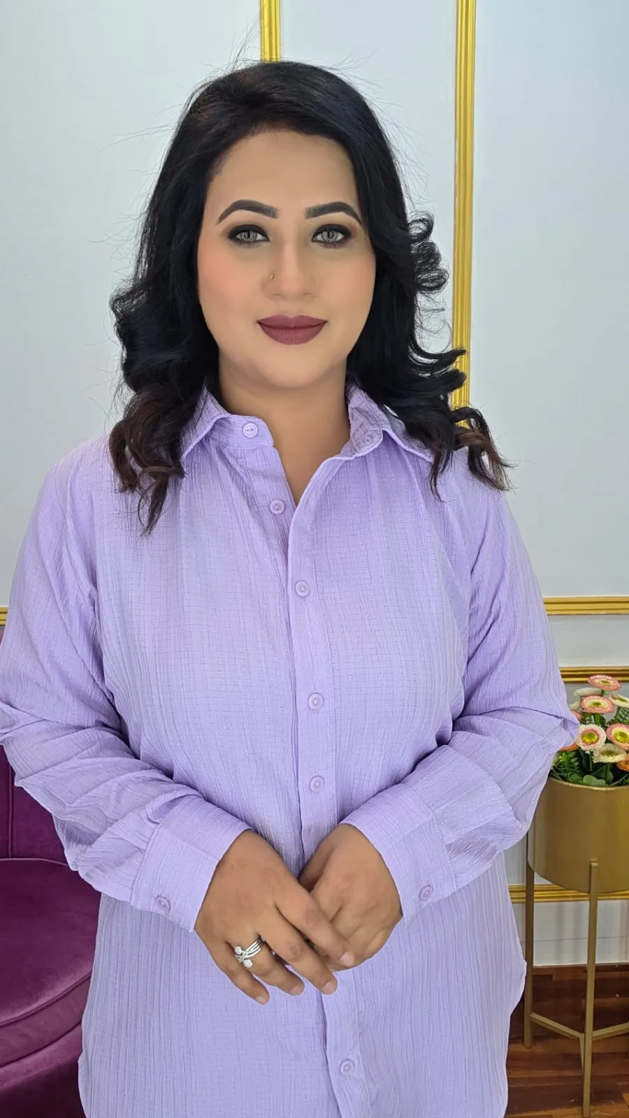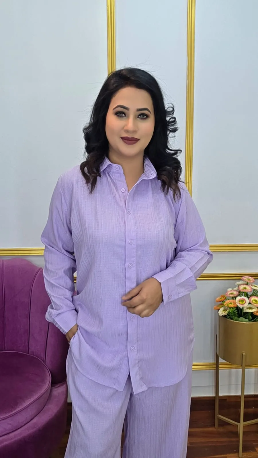 Upgrade your casual and party wardrobe with our Pop Georgette Co‑ords Set, designed for a stylish look and comfortable fit. Featuring a shirt collar, open button front, full sleeves, and pants with two pockets, this set delivers a perfect silhouette for everyday chic or special occasions.