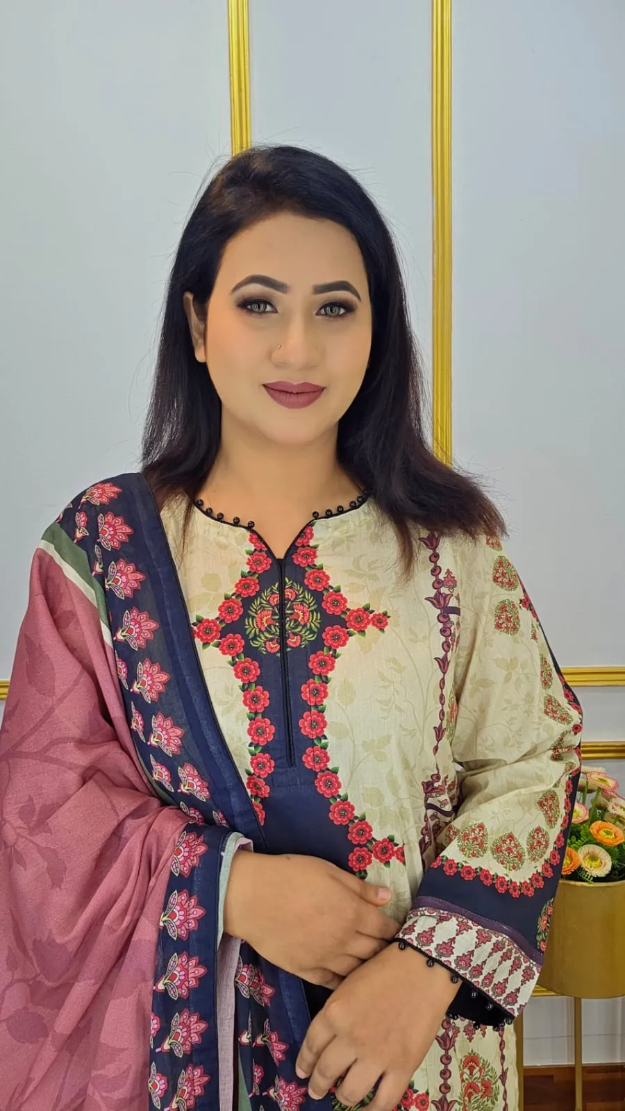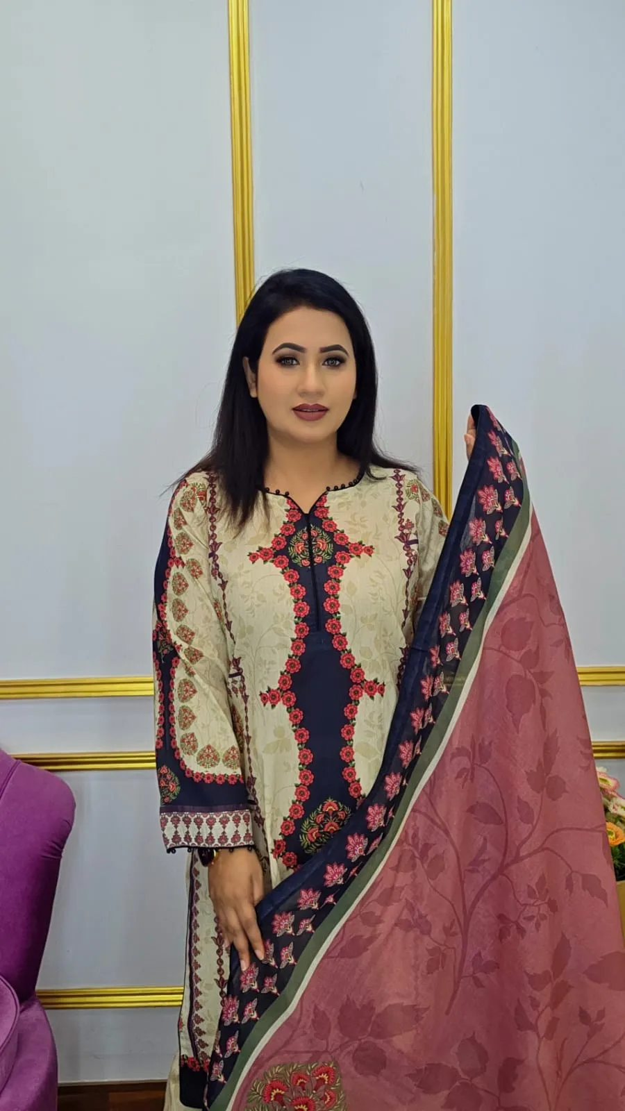 This sophisticated Ready Three Piece Suit will elevate your daily look. It is composed of high-quality pure cotton fabric, which is soft, breathable, and cozy. This ensemble blends comfort and contemporary style, making it ideal for everyday wear, the workplace, or informal gatherings.