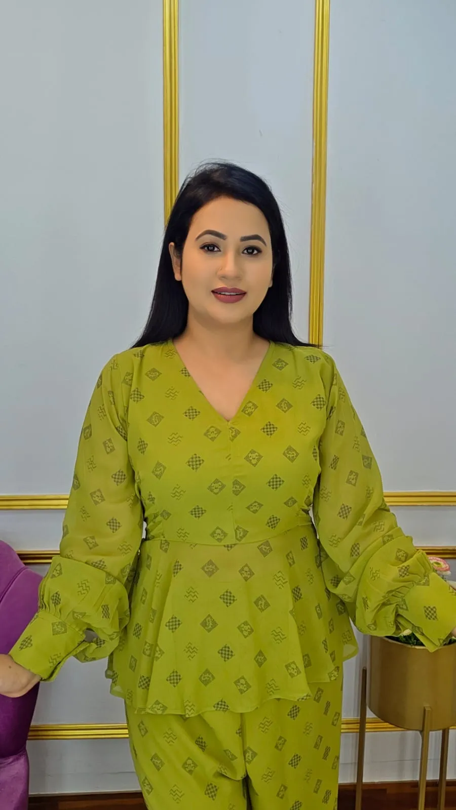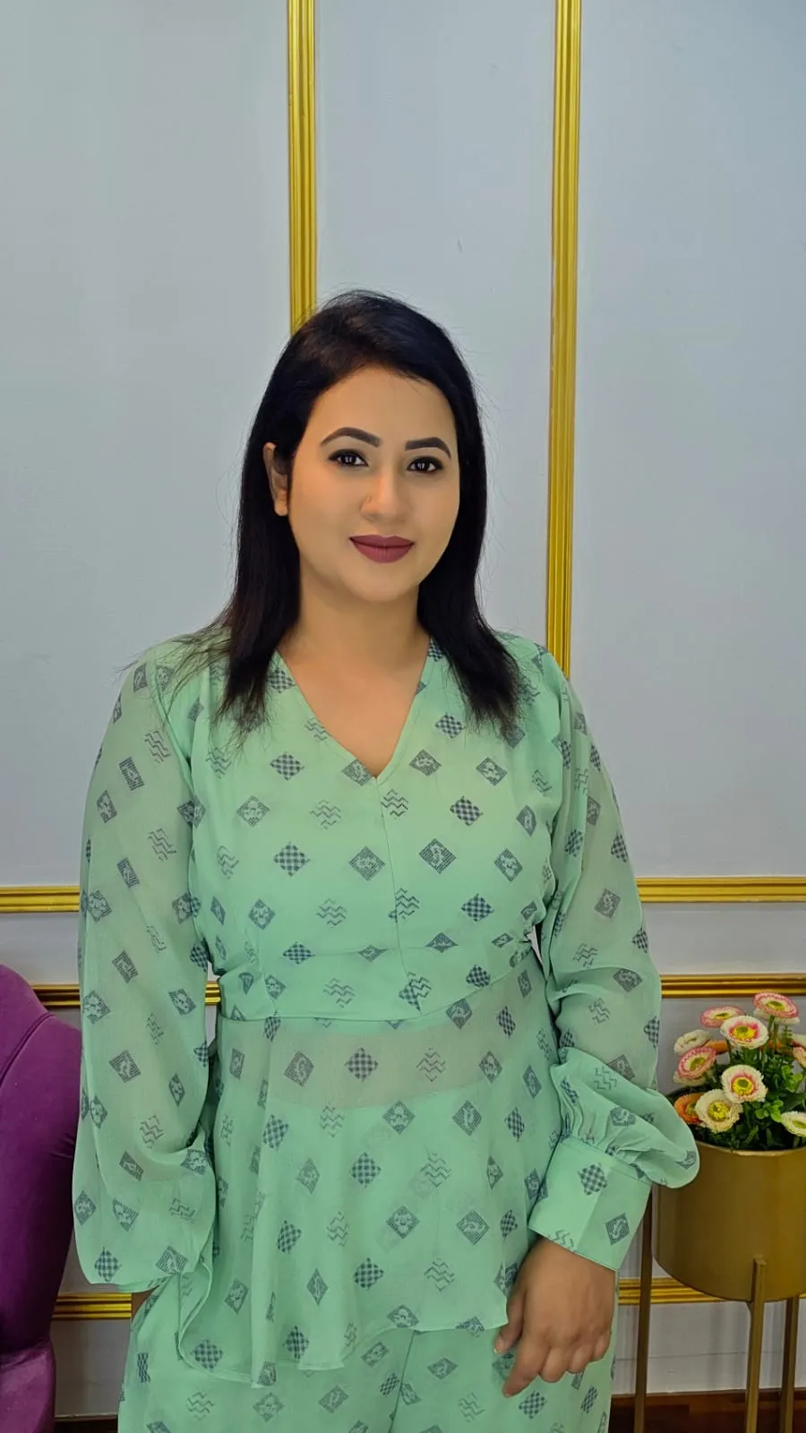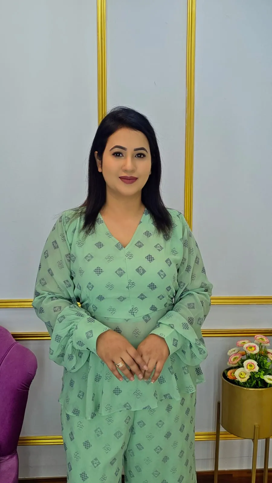 This Designer Two-Piece Set will elevate your wardrobe because it is made of high-quality georgette fabric, which feels smooth, light, and flowy. This ensemble combines contemporary style with everyday comfort, making it ideal for informal get-togethers, parties, or business attire.