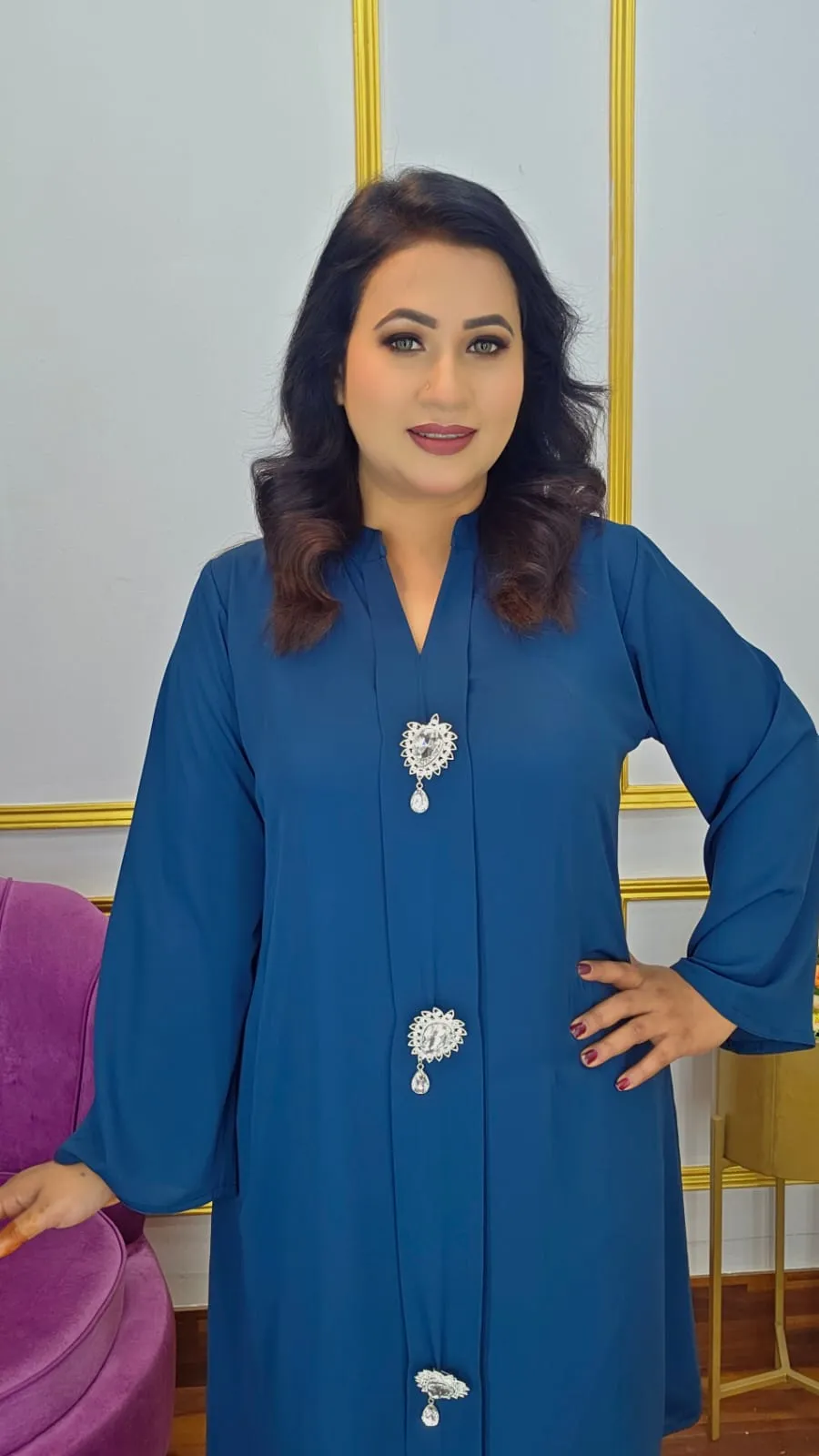 The full sleeve design of this outfit guarantees a modest and elegant appearance appropriate for both hijabi and non-hijabi styles. It is perfect for everyday wear, office wear, and informal get-togethers due to its simple and beautiful silhouette.