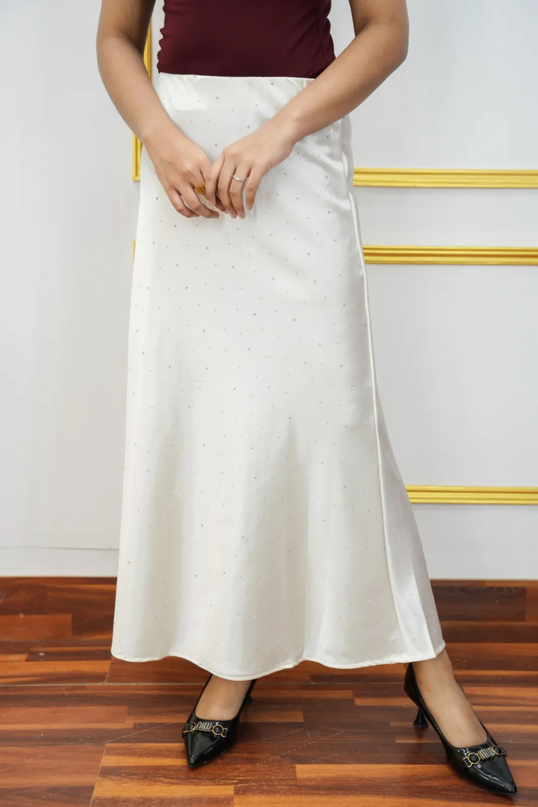 With a graceful length of 37–38 inches, this skirt creates a flattering silhouette that pairs perfectly with tops, blouses, or crop tops. Ideal for casual outings, daily wear, or stylish occasions, it offers both comfort and effortless style.