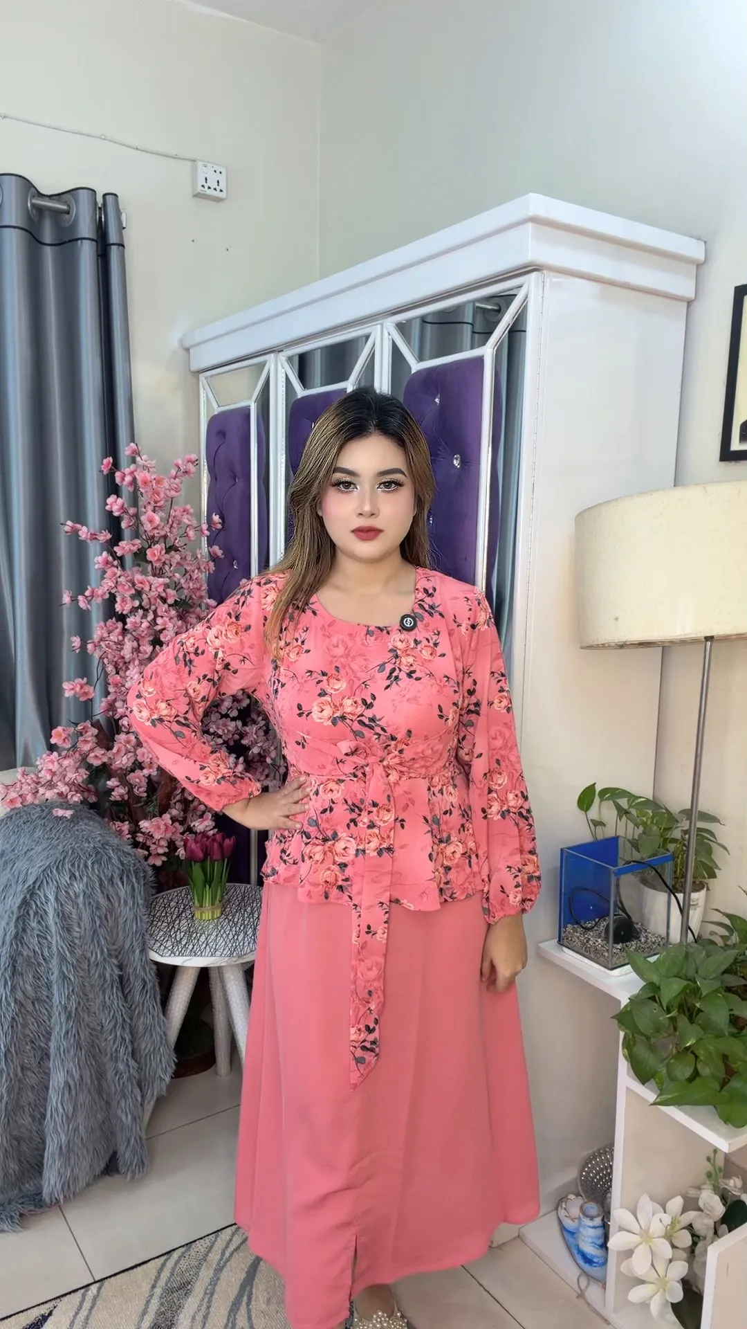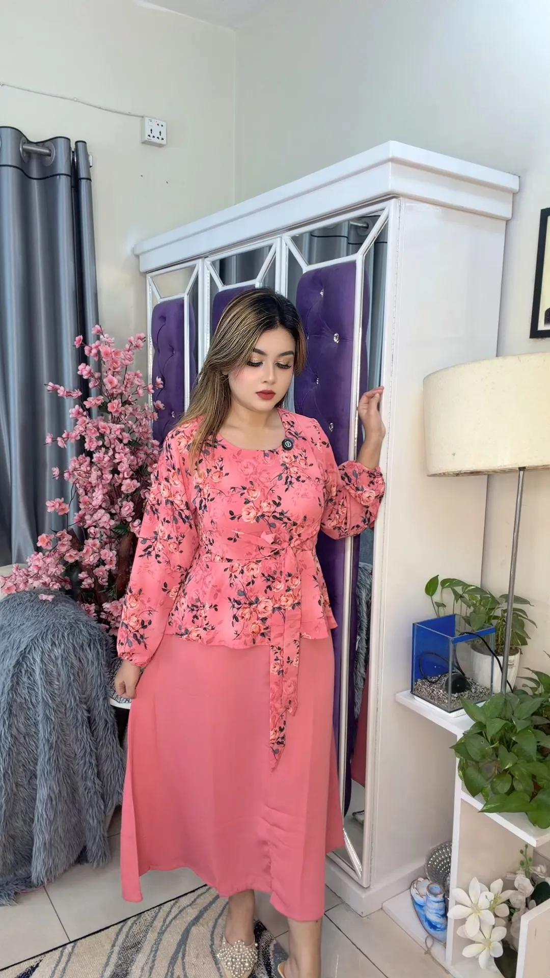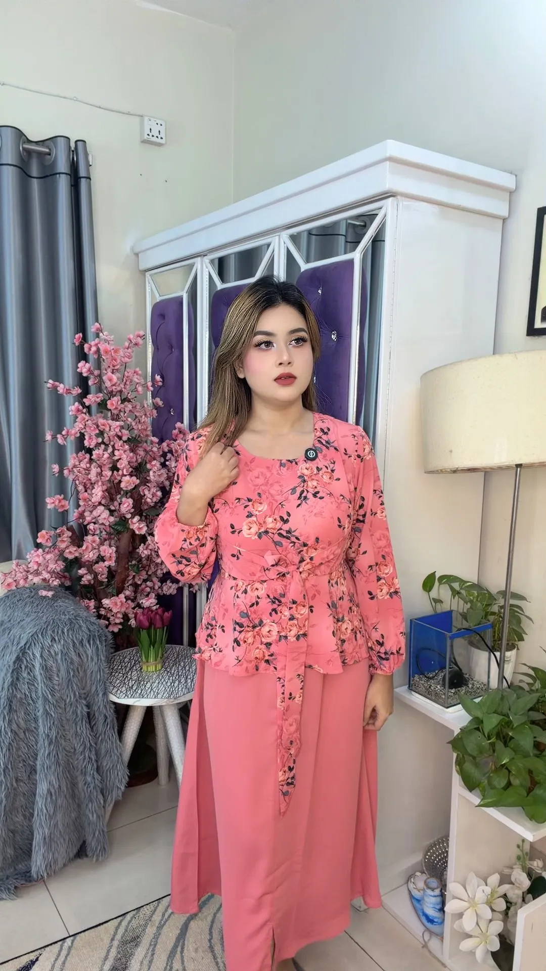 Your everyday elegance with this beautifully designed Midi Gown, crafted using a smart fabric combination for both style and comfort. The upper part is made of soft malai georgette, while the lower part features premium Dubai Cherry fabric, making the gown non-transparent and comfortable for confident wear.