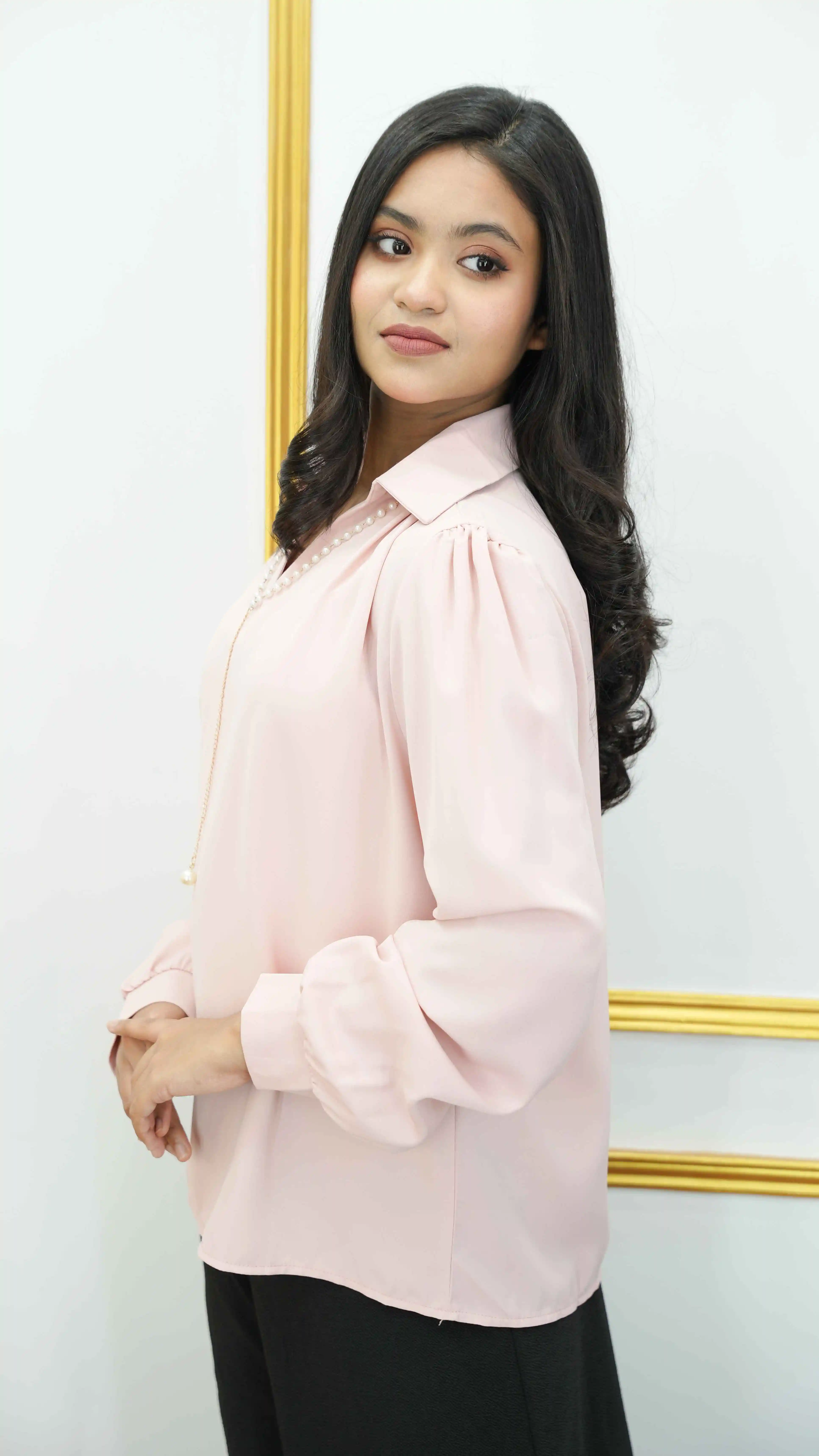 Thai imported premium chiffon top that perfectly blends elegance and contemporary style. Designed for the modern woman who values quality and sophistication, this versatile piece is ideal for both casual outings and formal occasions.
