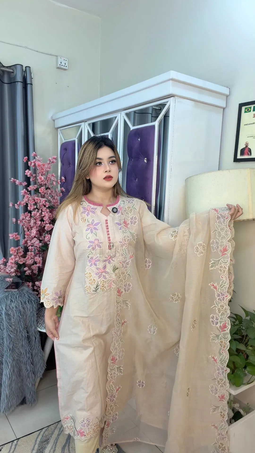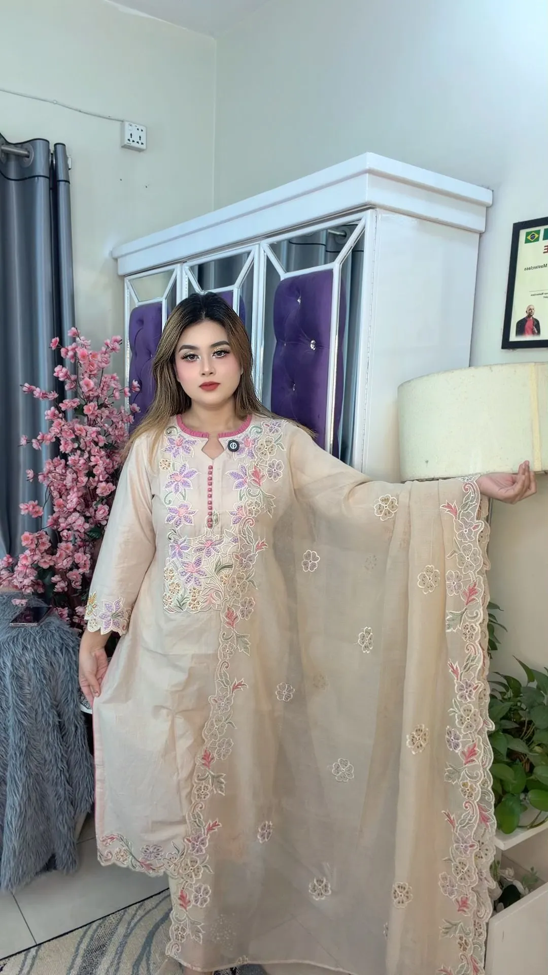 Designed for body size 56+, this set provides ample fabric for easy stitching and a customized fit. Ideal for festive wear, family occasions, office gatherings, or elegant daily use, this three-piece ensemble blends comfort, craftsmanship, and classic style.