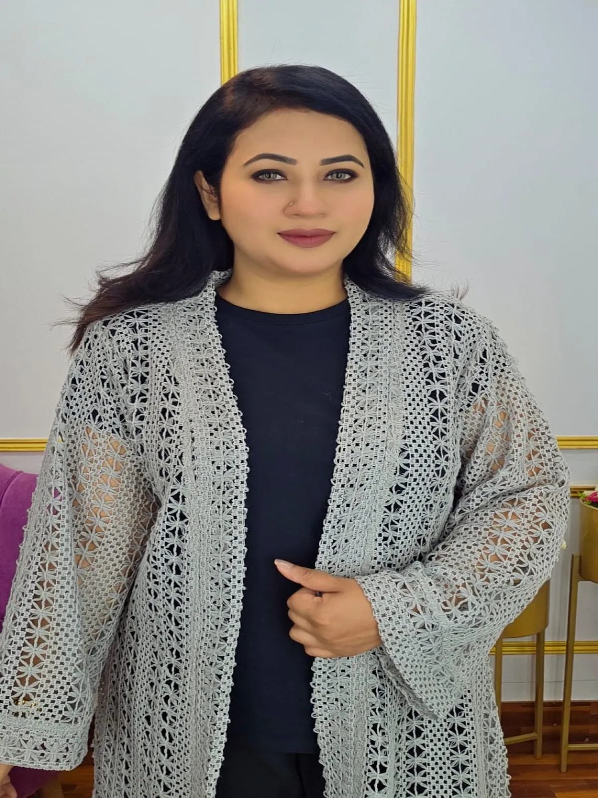 Step into elegance with our Cotton-Based Net Long Shrug 💫