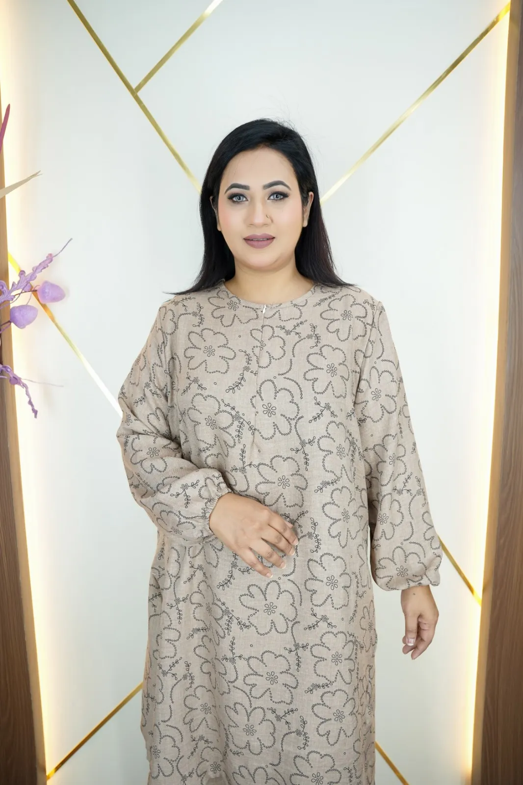 This Imported Thai Co-Ords Set, crafted from premium Viscose Cotton fabric that feels soft, breathable, and lightweight. The elegant all-over print design and full sleeves create a modern, fashionable look suitable for everyday wear, outings, or casual occasions.