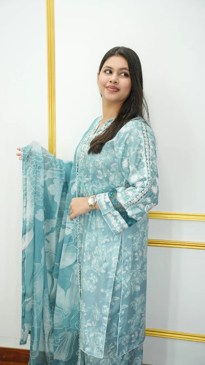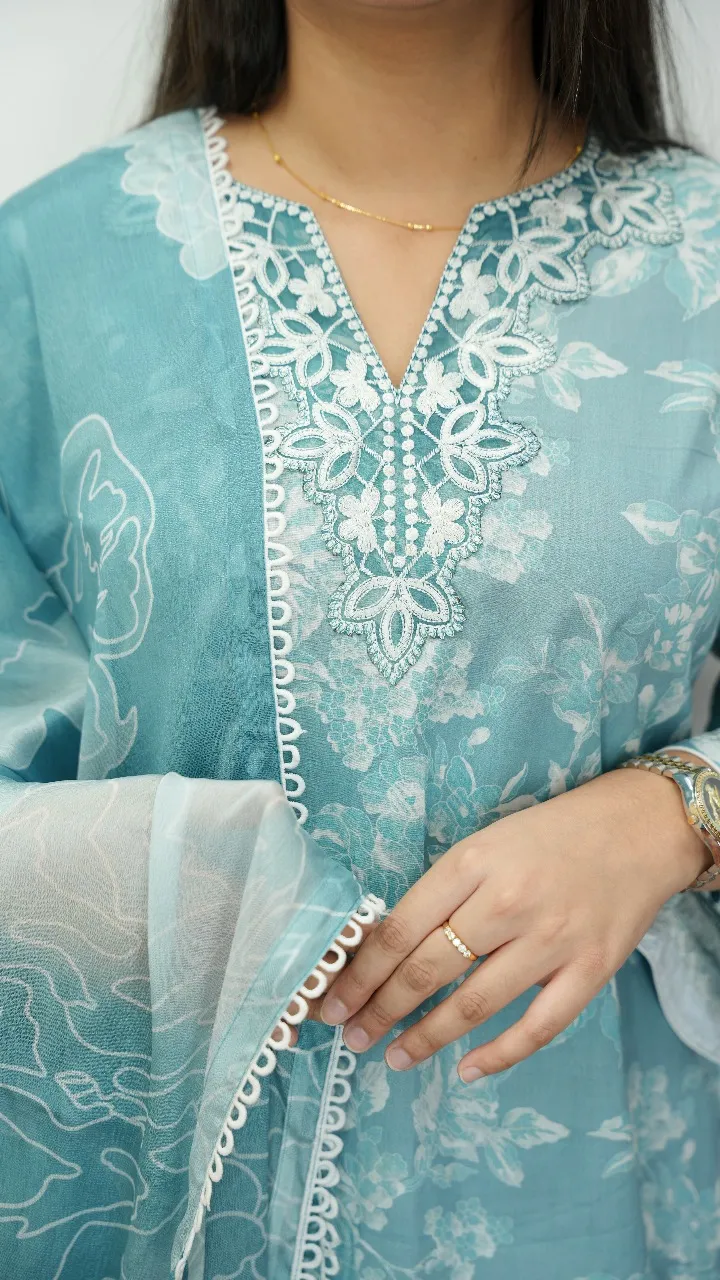 Upgrade your wardrobe with this premium cotton 3-piece unstitched set featuring elegant embroidery, a stylish chiffon orna, and vibrant digital prints. Perfect for casual outings, festive occasions, or chic everyday wear.