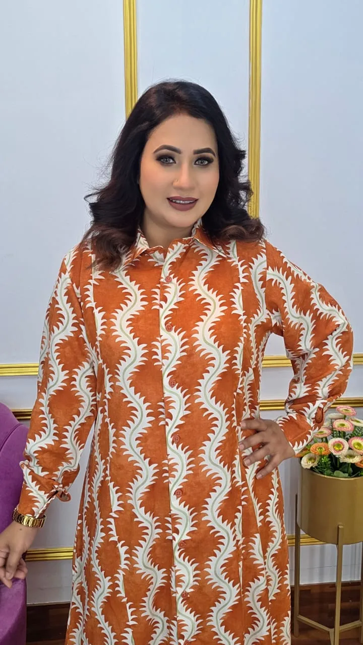 Crafted from high-quality imported linen, the fabric is lightweight, breathable, and comfortable in any season. The knee-length shirt pairs perfectly with the coordinated bottom for a clean, stylish silhouette.