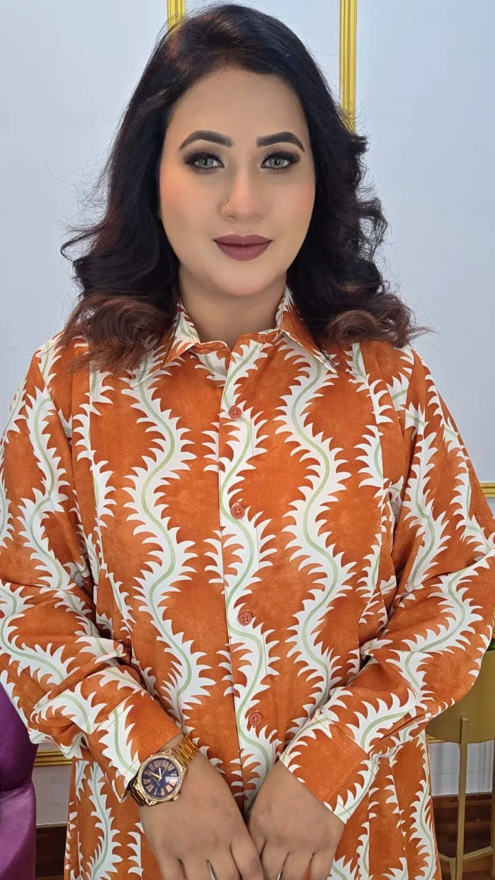 This premium Imported Linen Co-ords Set, designed for effortless elegance and all-day comfort. Featuring a classic shirt-style collar, full button-down front, and full-length sleeves with wide cuffs, this set delivers a polished, modern look suitable for office wear, casual outings, or travel.