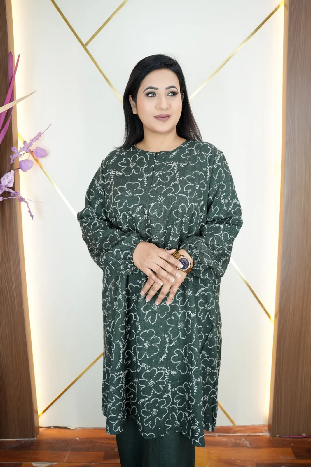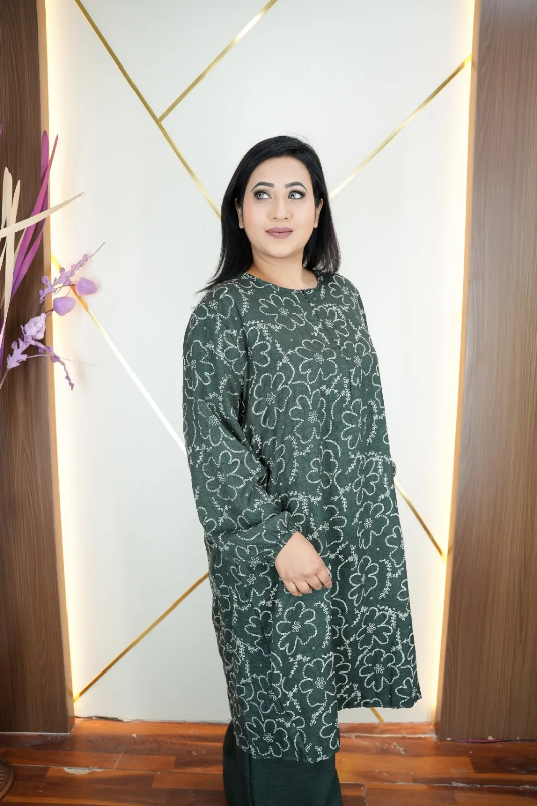 This Imported Thai Co-Ords Set, crafted from premium Viscose Cotton fabric that feels soft, breathable, and lightweight. The elegant all-over print design and full sleeves create a modern, fashionable look suitable for everyday wear, outings, or casual occasions.