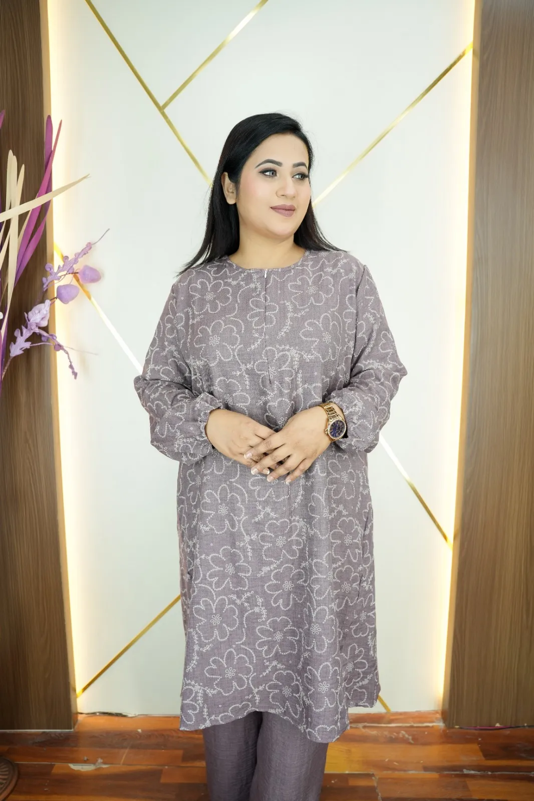This Imported Thai Co-Ords Set, crafted from premium Viscose Cotton fabric that feels soft, breathable, and lightweight. The elegant all-over print design and full sleeves create a modern, fashionable look suitable for everyday wear, outings, or casual occasions.