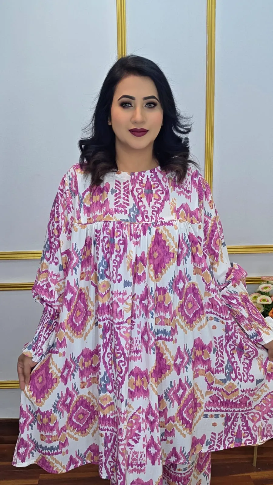 Step up your style with this elegant Kaftan Co-ords Set, crafted from premium Imported Lilen. Featuring cod piping and full sleeves, it offers a chic, comfortable, and effortless look. Perfect for casual outings, home wear, or stylish lounging.