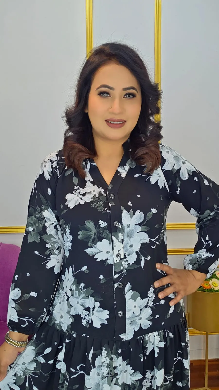 With a flowing length of 52–54 inches and a comfortable fit for body sizes 34–48, this gown flatters different body types and allows easy movement. Perfect for daily wear, outings, or relaxed occasions, this gown blends simplicity with modern fashion.