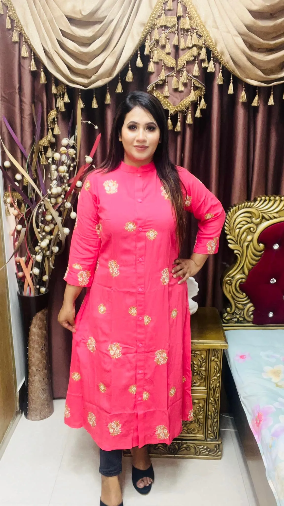 Elevate your everyday wardrobe with this Long Shirt Kurti, crafted from soft and breathable Arong Lilen fabric for a comfortable and stylish fit. Designed for body sizes 34–48 with a length of 46/48 inches, this kurti is perfect for casual outings, office wear, or festive occasions.