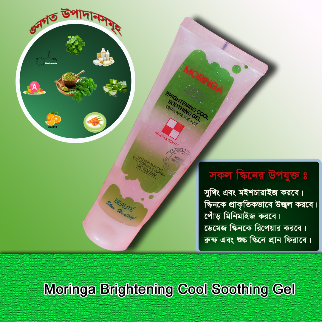 Experience refreshing, brightening care with the Melasma-X Moringa Brightening Cool Soothing Gel. Enriched with Vitamin C, A, E, Calcium, Moringa leaf, Centella, Aloe Vera, Carrot extract, Niacinamide, and Glycerin, this multi-benefit gel deeply hydrates, soothes, and naturally brightens the skin.