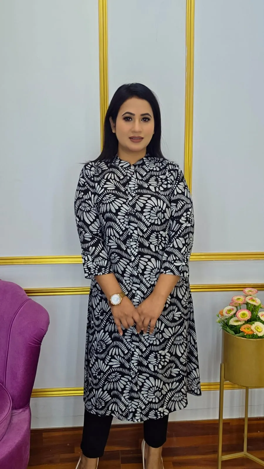 This stylish Long Shirt, made from soft and breathable Switch Cotton for all-day comfort. Designed with a fully open button style, it provides versatility to wear as a standalone piece or layered with a shrug or vest.