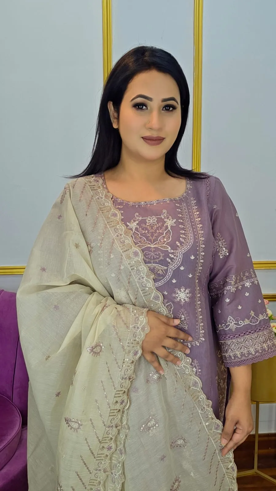 Ideal for festive occasions, family gatherings, cultural programs, and elegant casual wear, this three piece set blends classic craftsmanship with modern sophistication.