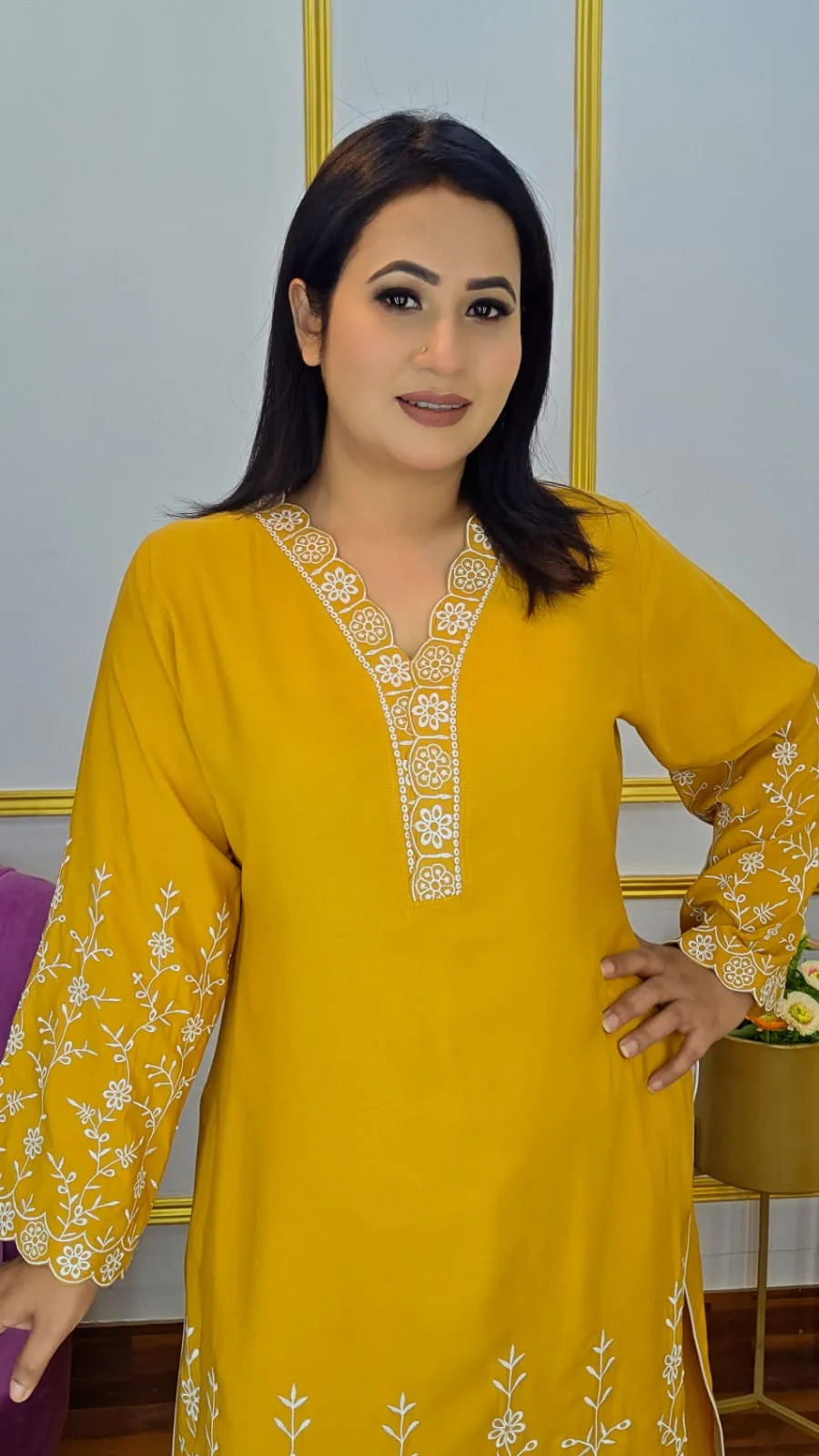 Designed to fit body sizes 34–48, with a length of 42+ inches, this co-ord set provides a flattering and graceful silhouette. Perfect for casual wear, office wear, outings, or light occasions, it’s an ideal choice for women who love effortless style with subtle detailing.