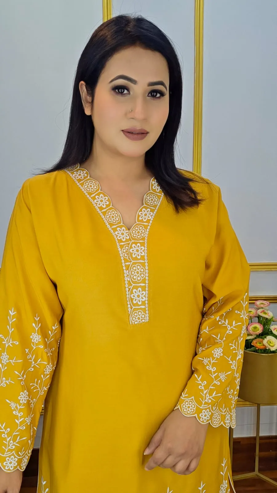This stylish Co-Ord Set is crafted from premium imported linen fabric, offering a comfortable, breathable, and elegant feel. The outfit features beautiful embroidery work that adds a classy and refined touch, while the Code piping design enhances the overall structure and finish.
