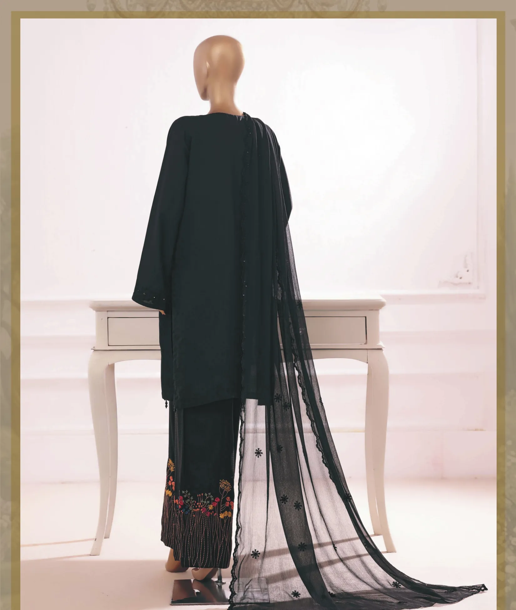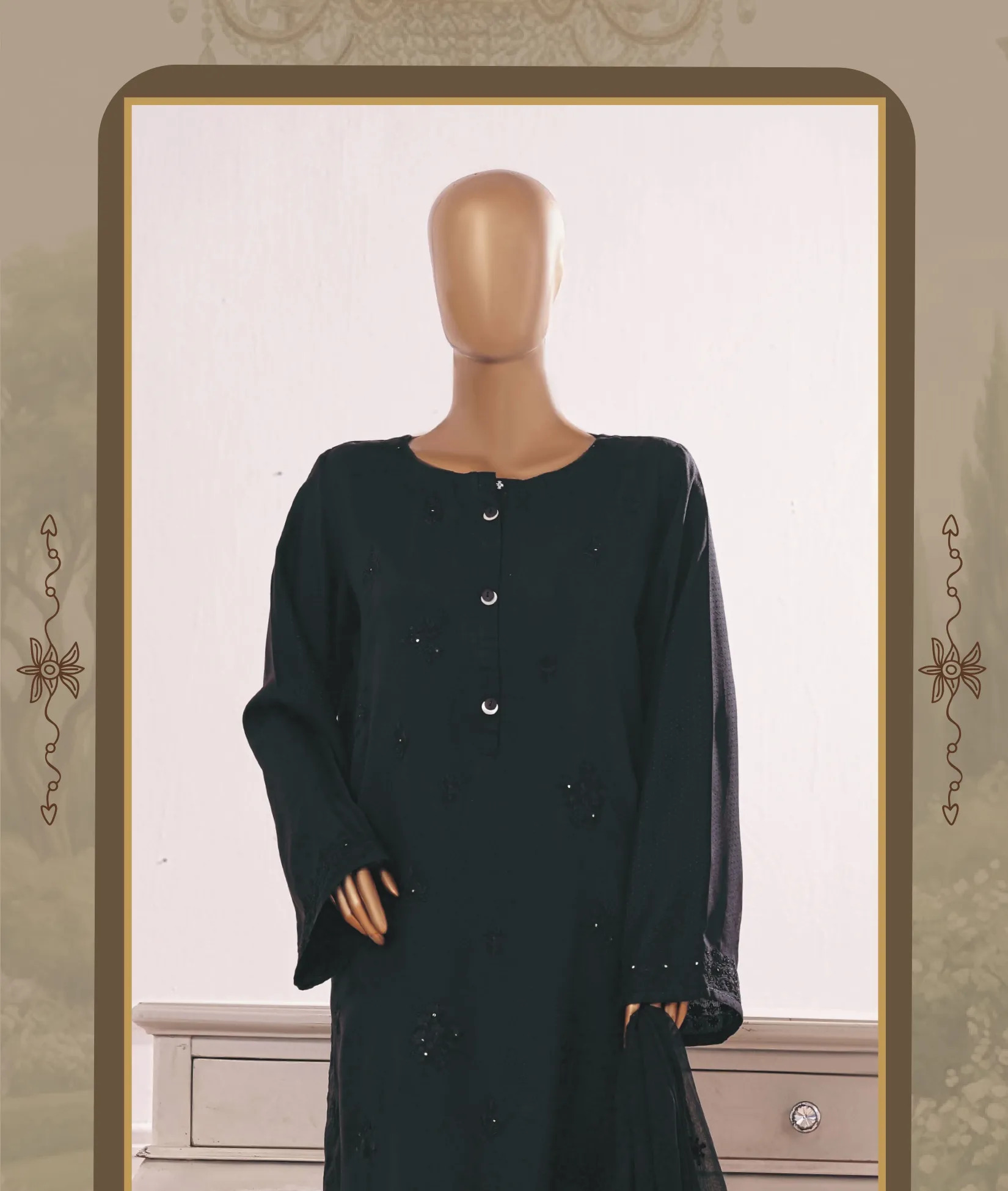 With this sophisticated Pakistani Ready Three Piece Set, which is made of high-quality raw silk fabric for a plush, opulent feel, you can go out in style. This ready-to-wear ensemble blends classic elegance with contemporary comfort, making it ideal for weddings, parties, or festive occasions.