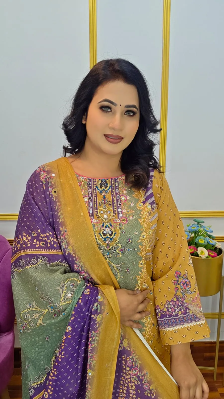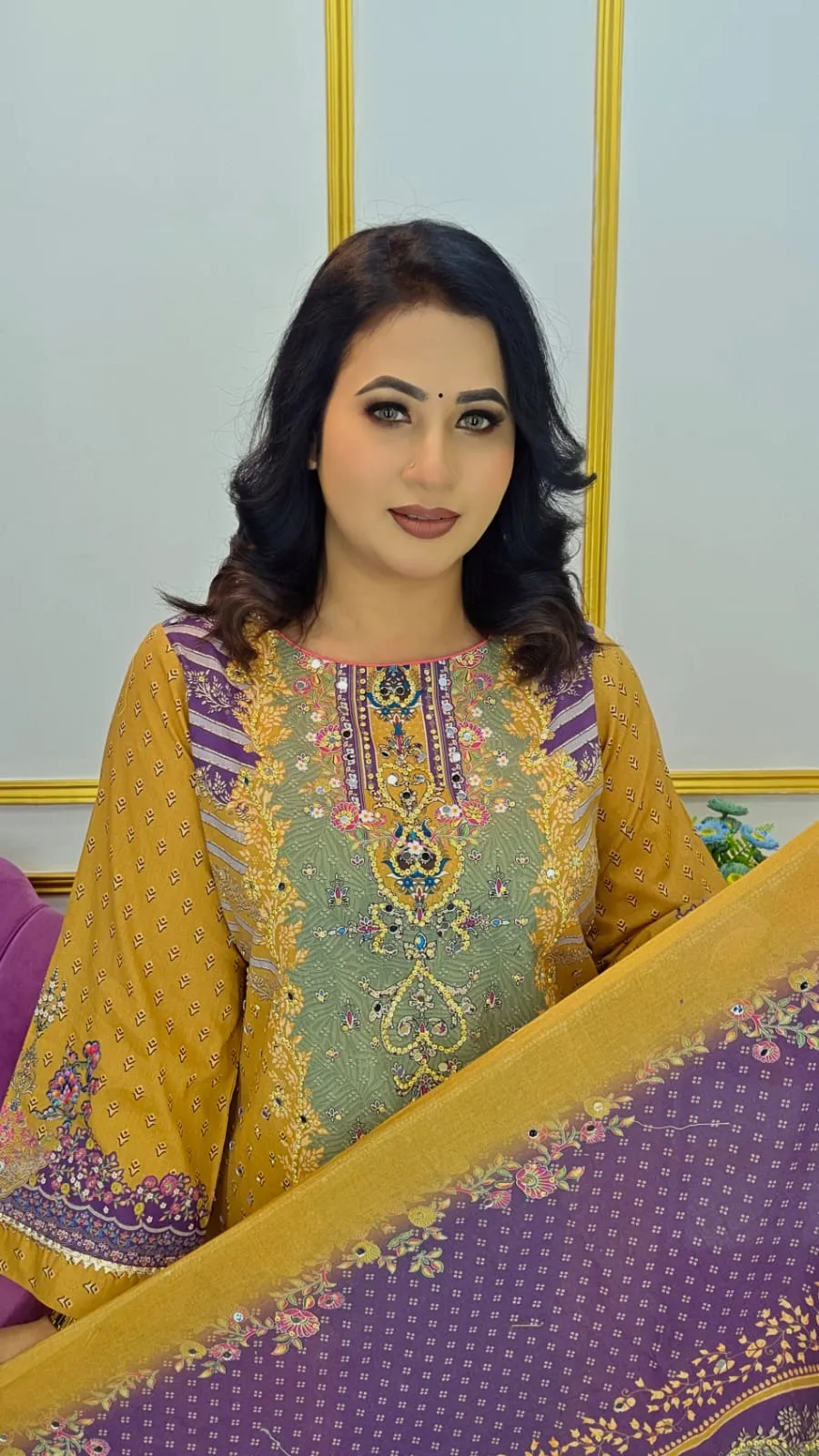 Premium Pure Cotton Unstitched Three Piece set, designed for comfort, elegance, and custom tailoring. The set combines vibrant all‑over digital prints with exquisite stone work, delivering a luxurious look that’s perfect for daily wear, gifting, or special occasions.