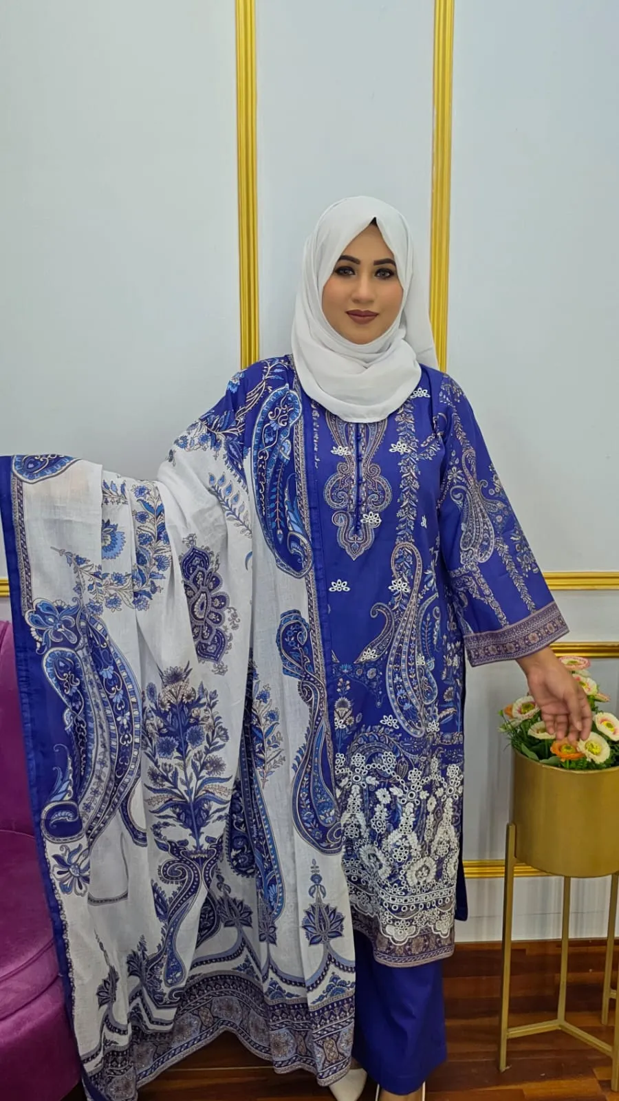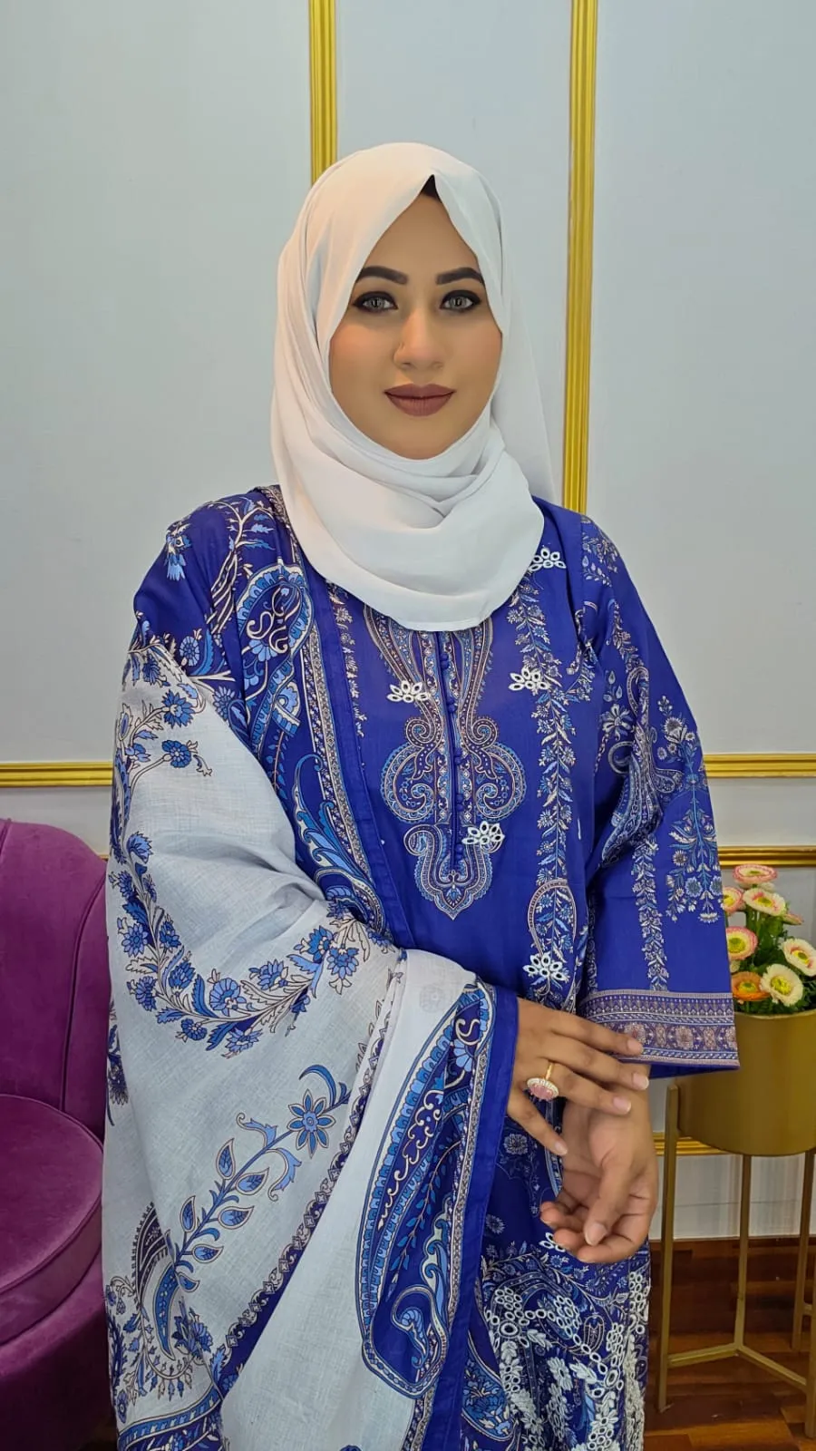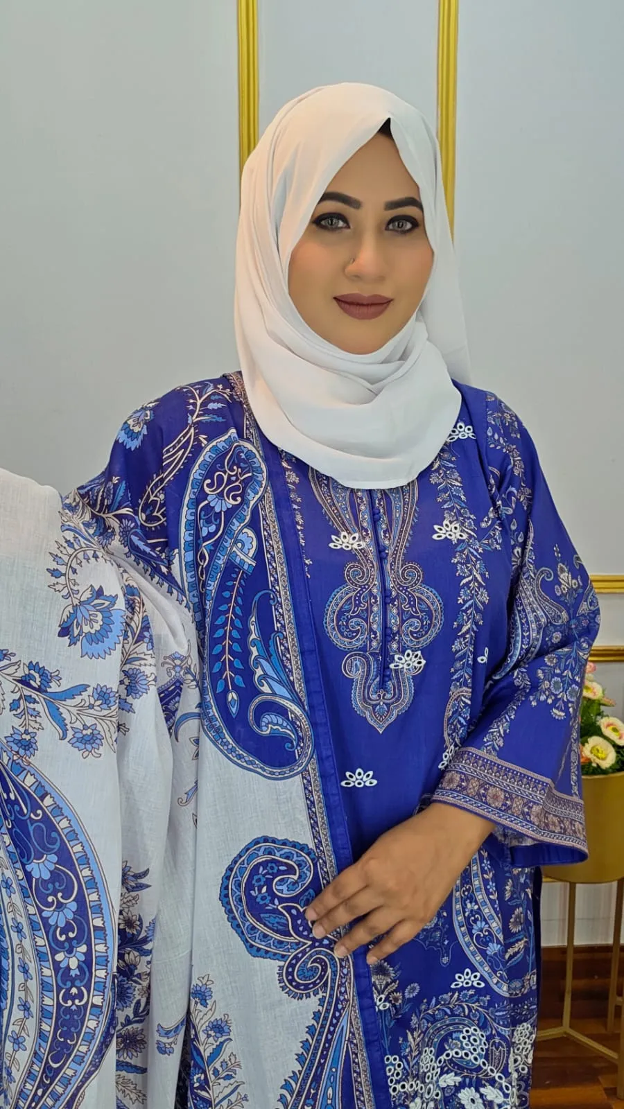 This Ready Three Piece Set, crafted from soft pure cotton fabric for a breathable, comfortable, and stylish fit. The outfit features a digital print with delicate embroidery, giving it a modern yet elegant look suitable for casual and semi-formal occasions.