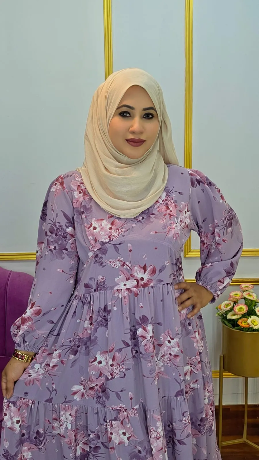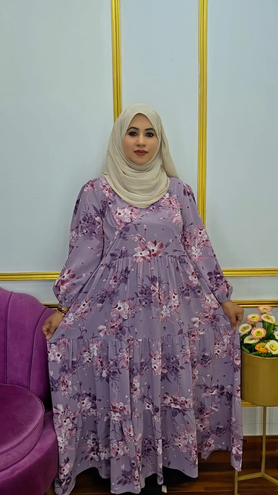 It comes with an extra adjustable belt, allowing you to define the waist and style the gown according to your preference. With a graceful 48-inch length and a comfortable fit suitable for body sizes 34–48, this gown is perfect for casual outings, office wear, day programs, or relaxed evening occasions.