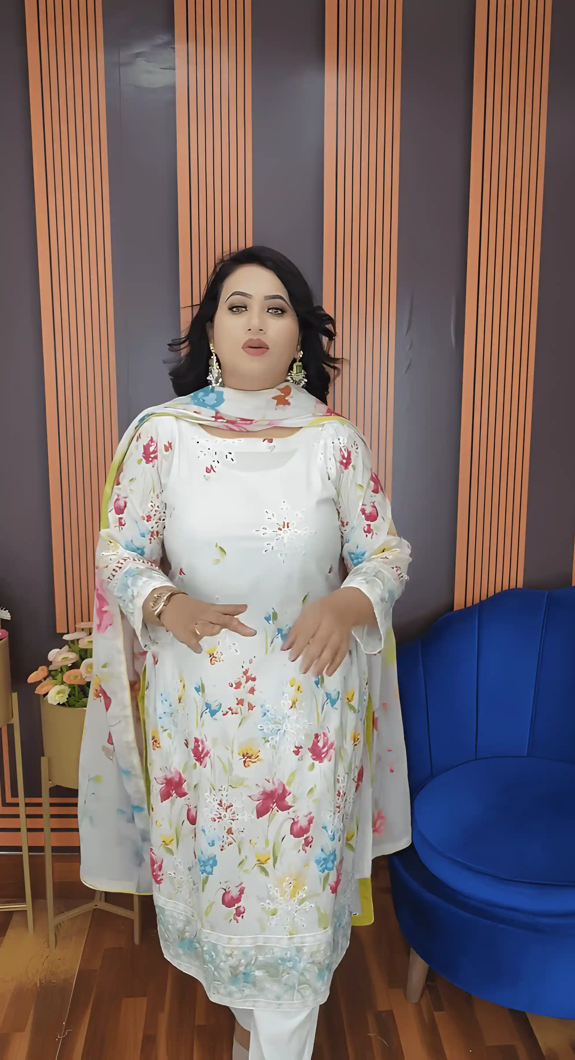 The outfit is beautifully enhanced with boring embroidery work, adding a subtle yet luxurious touch that makes it suitable for daily wear, office use, family programs, and light festive occasions. Designed to fit sizes 40–46, it offers a flattering and comfortable fit for modern women who value both style and ease.