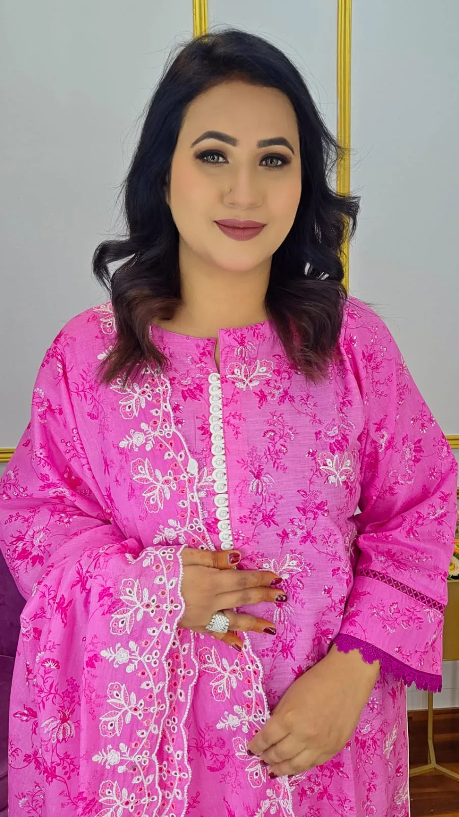 The set's exquisite embroidery gives your appearance a hint of refinement and charm. Its elegant design keeps you appearing effortlessly stylish, and its soft cotton fabric guarantees all-day comfort.