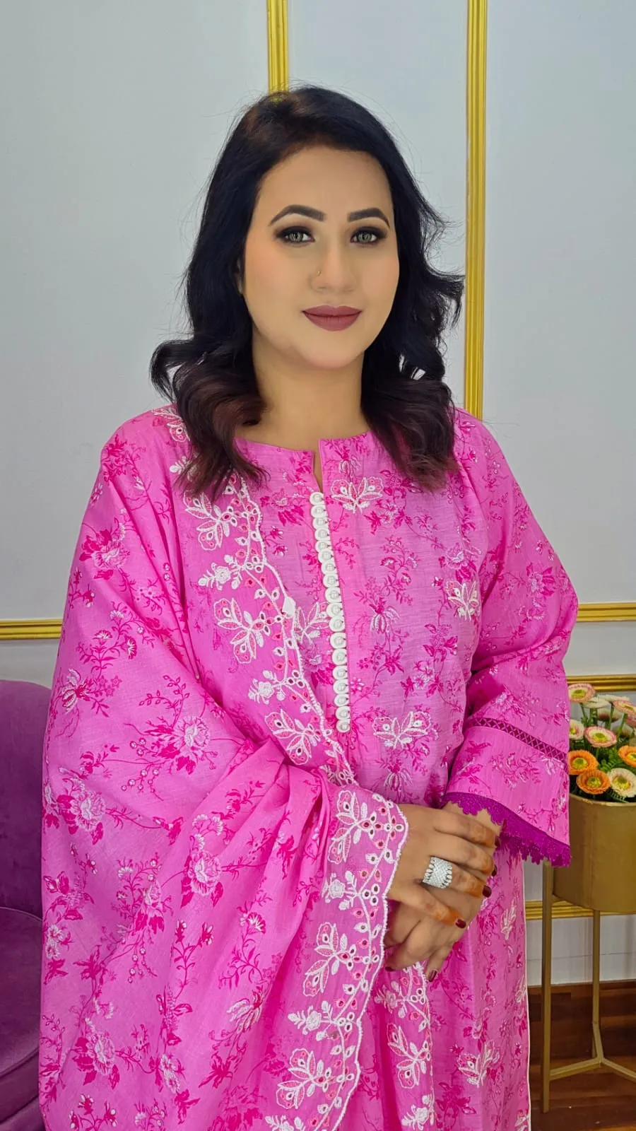This sophisticated Ready Three Piece Suit, made of superior pure cotton fabric for maximum comfort and breathability, will elevate your wardrobe. This ensemble blends flair and ease, making it ideal for everyday wear, the workplace, or informal events.