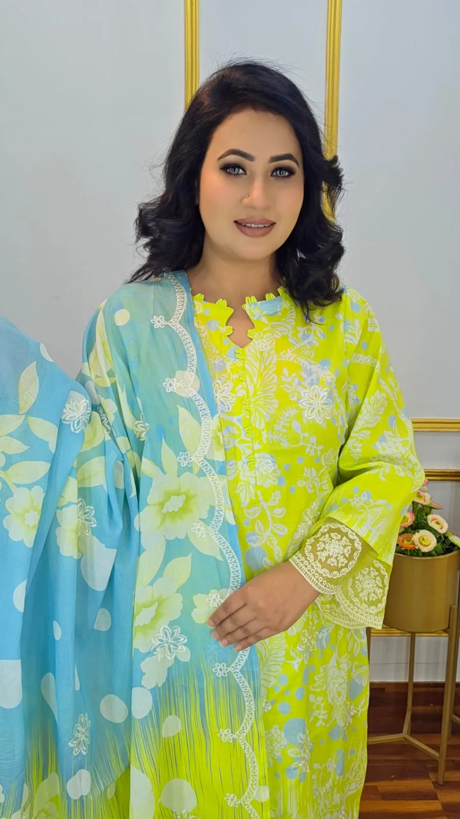 This elegant Unstitched Three Piece Collection, crafted from premium pure cotton fabric that is soft, breathable, and perfect for all-day comfort. The dress features a beautiful digital print enhanced with delicate embroidery work, creating a refined and stylish look.