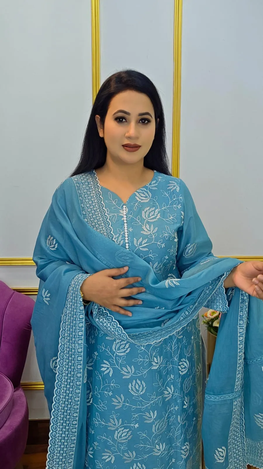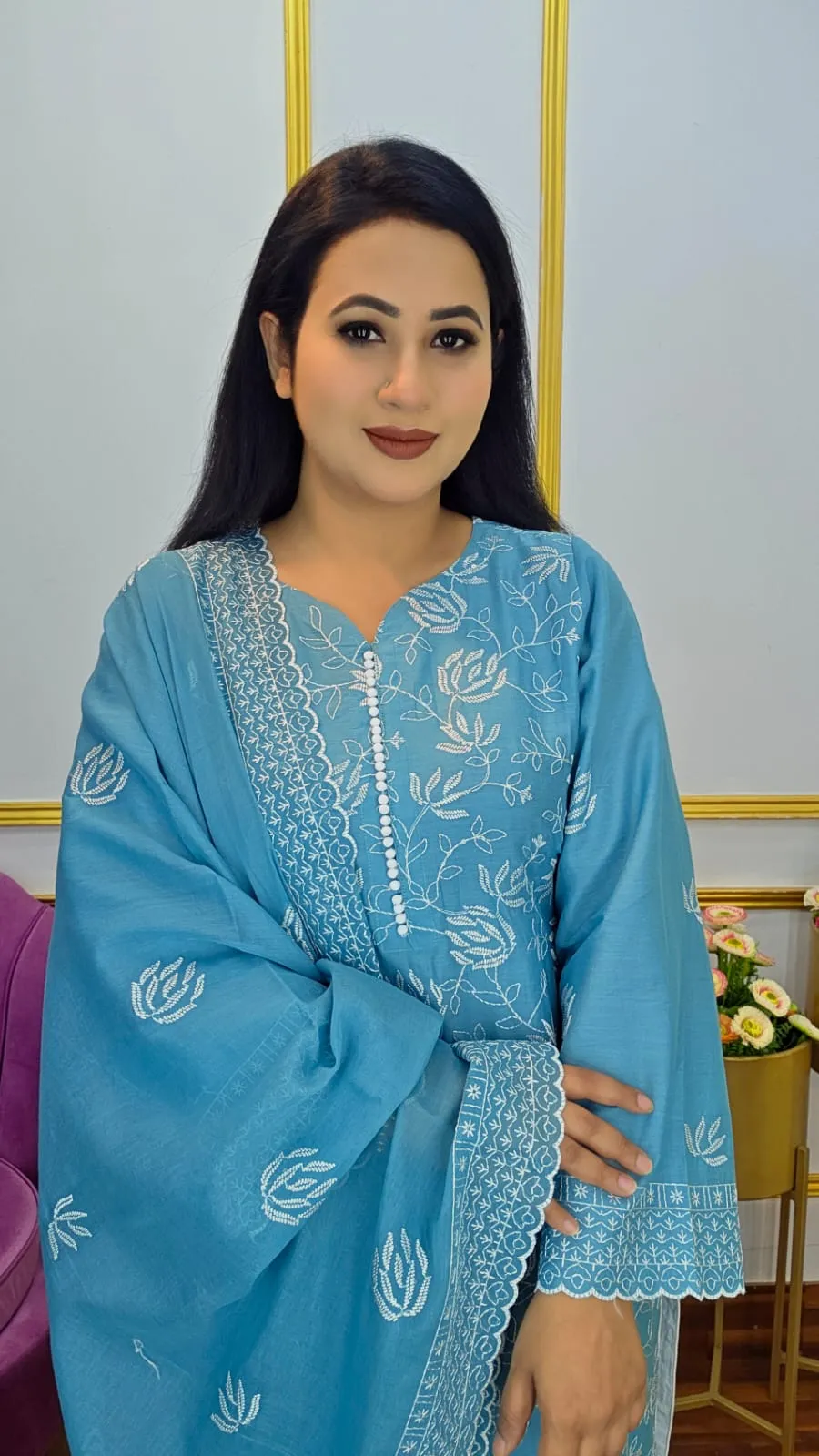This Unstitched Three Piece Collection, crafted from high-quality pure cotton fabric for a soft, breathable, and comfortable feel. The dress is beautifully enhanced with delicate sequin embroidery work, giving it a graceful and premium look.