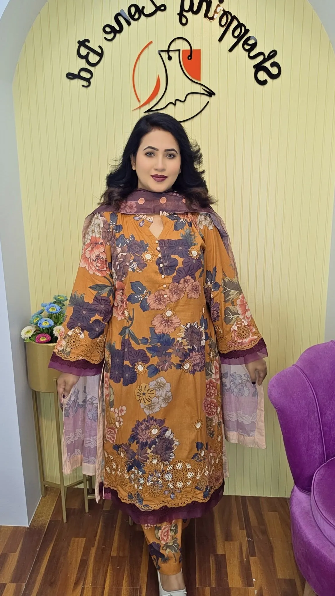 premium comfort and elegant style with this Ready Three Piece Set, made from high-quality luxury cotton that feels soft, breathable, and skin-friendly. The outfit features full digital print across the dress body, pant, and orna, creating a rich and coordinated look.