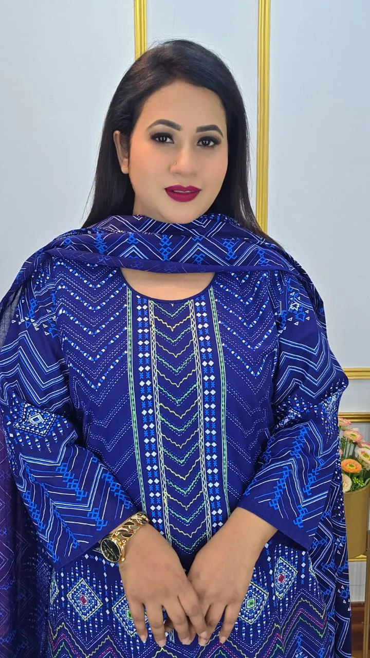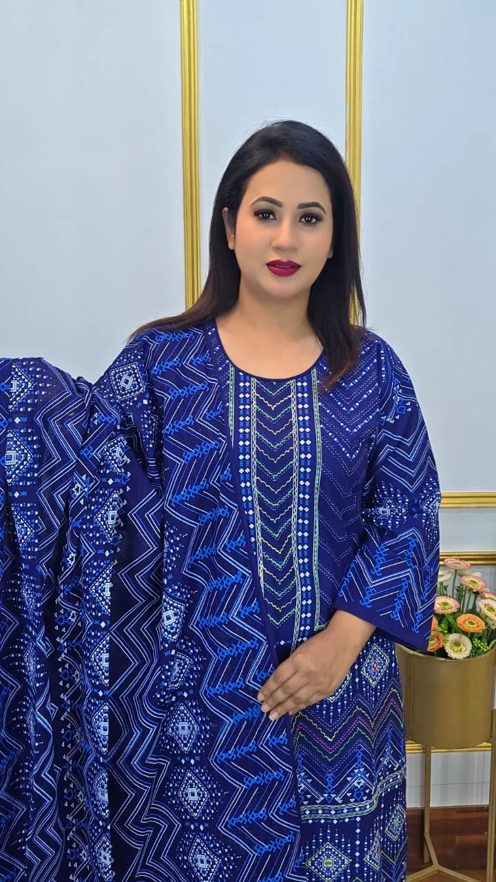 Experience the perfect blend of comfort and style with this stunning ready three-piece suit featuring vibrant geometric and tribal prints. Crafted from premium pure cotton with intricate mirror work and beautiful tassel dupatta, this complete set is ready to wear with no tailoring needed.