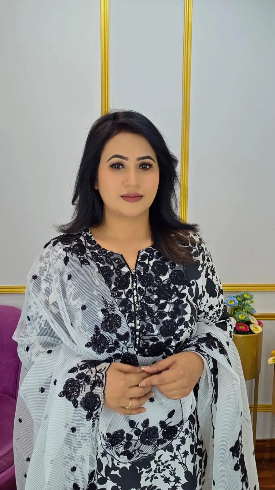 Elegant Digital Print with Sequence Embroidery Work