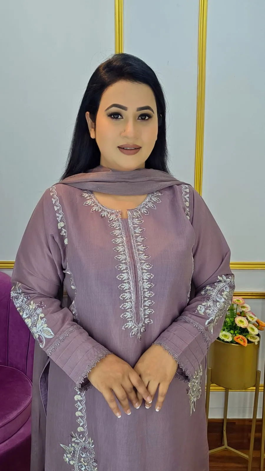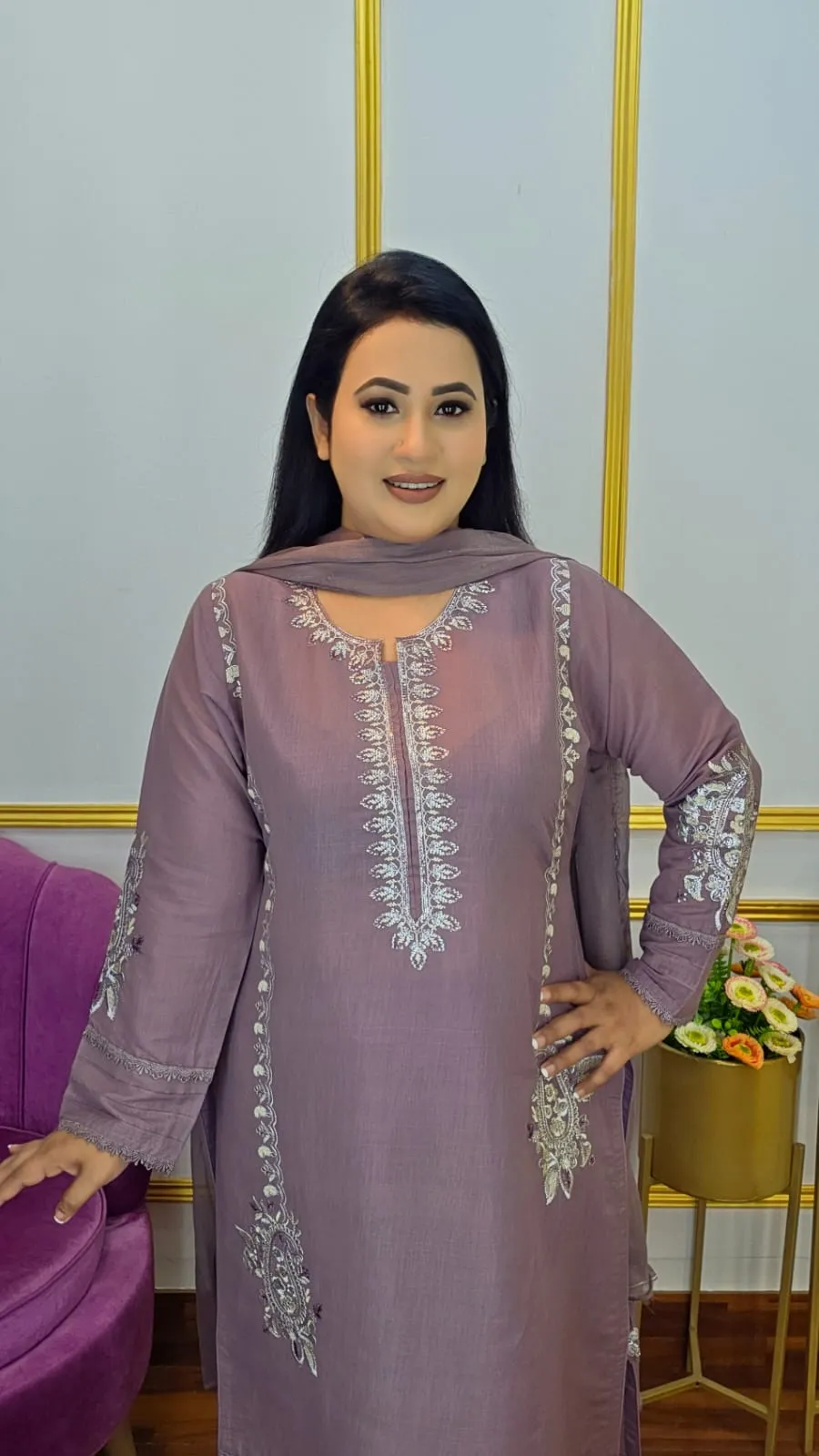 This sophisticated Unstitched Three-Piece Set will update your wardrobe because it is made of high-quality silk cotton fabric, which feels smooth, soft, and cozy. This set combines luxury with everyday comfort, making it ideal for celebrations, parties, or special events.