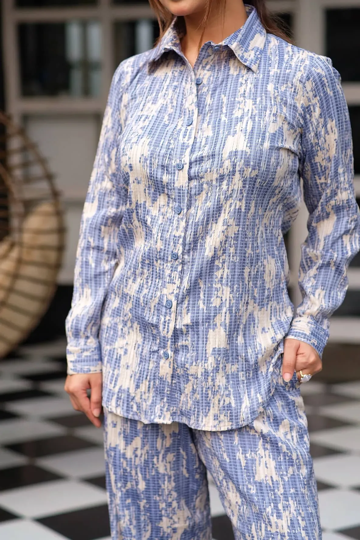 Step out in style with this Co‑ords Set that combines fashionable design and comfortable fit. Crafted from Imported Popbil fabric, it features a shirt collar, open button front, full sleeves, and pants with two pockets—perfect for casual outings or party wear.