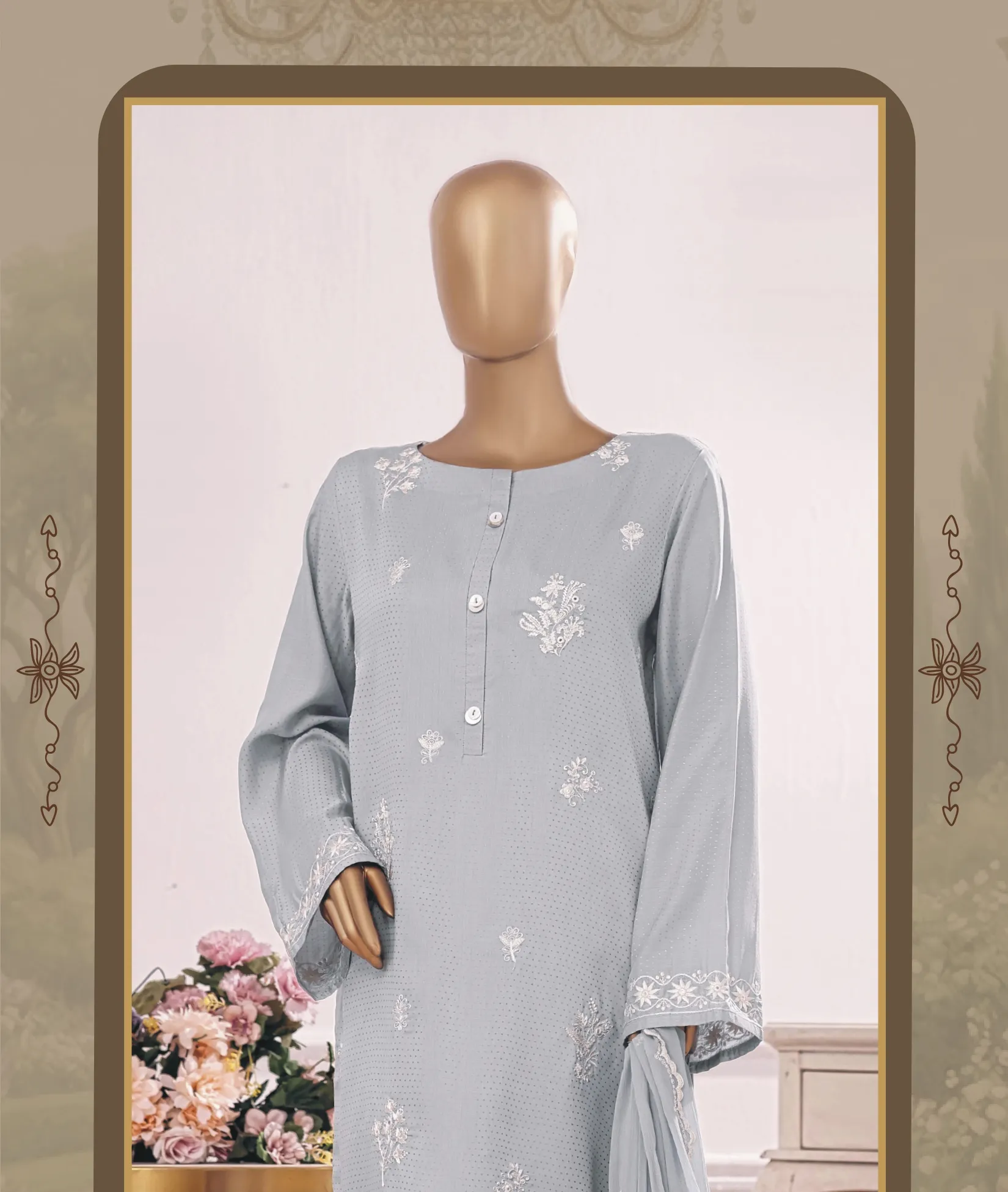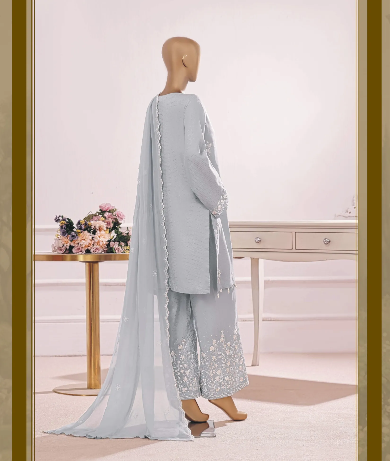 The dress's elaborate embroidery adds a delicate yet fashionable touch. A lightweight chiffon dupatta that creates a flowing silhouette and elegant drape complements it. For every special occasion, this ensemble guarantees a stylish and carefree appearance.