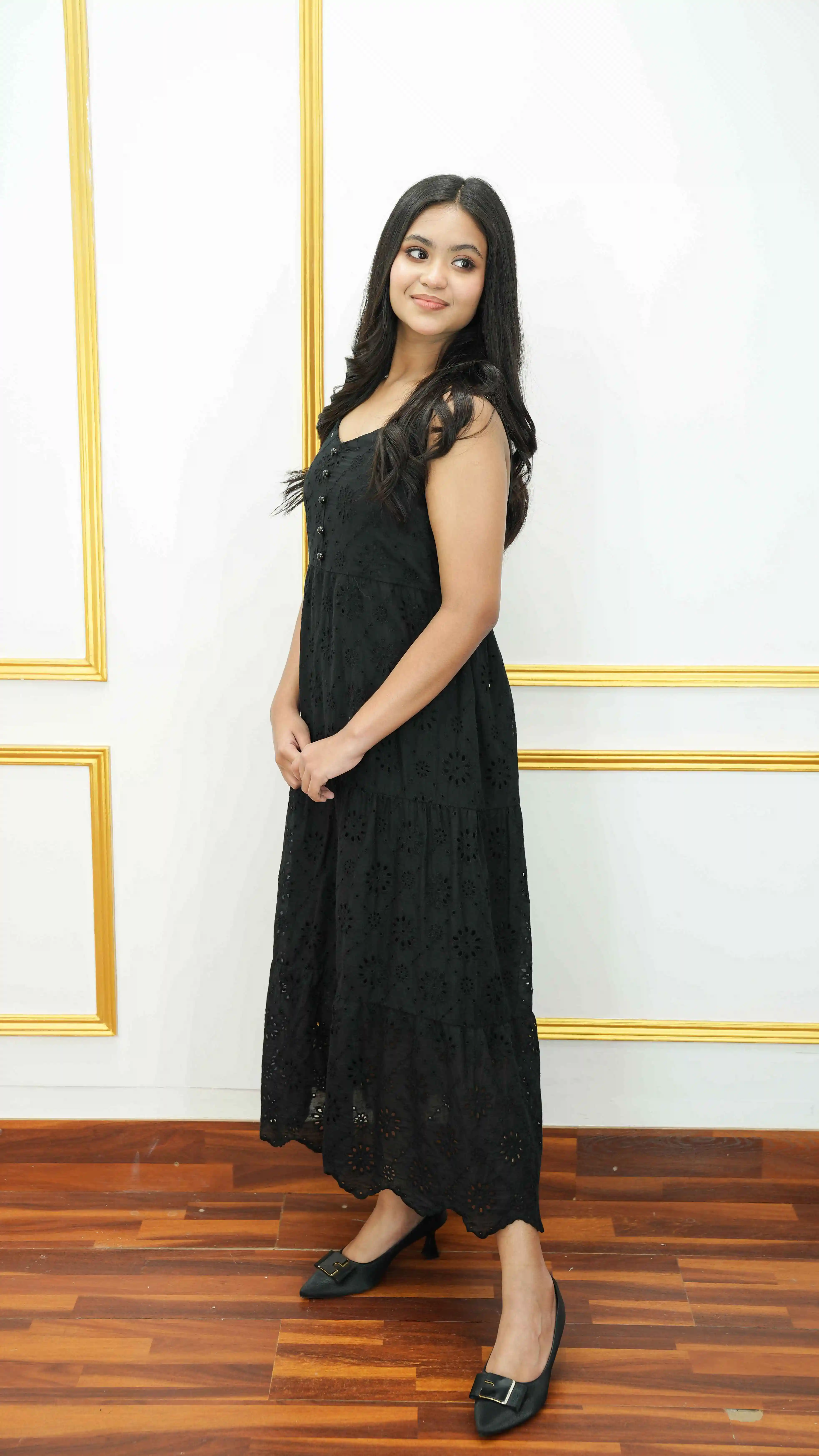 Elevate your style with this stunning Thai imported black gown dress that perfectly combines elegance and comfort. Made from premium cotton fabric, this sleeveless V-neck dress features a beautiful tiered flare design that creates a flowing, flattering silhouette.