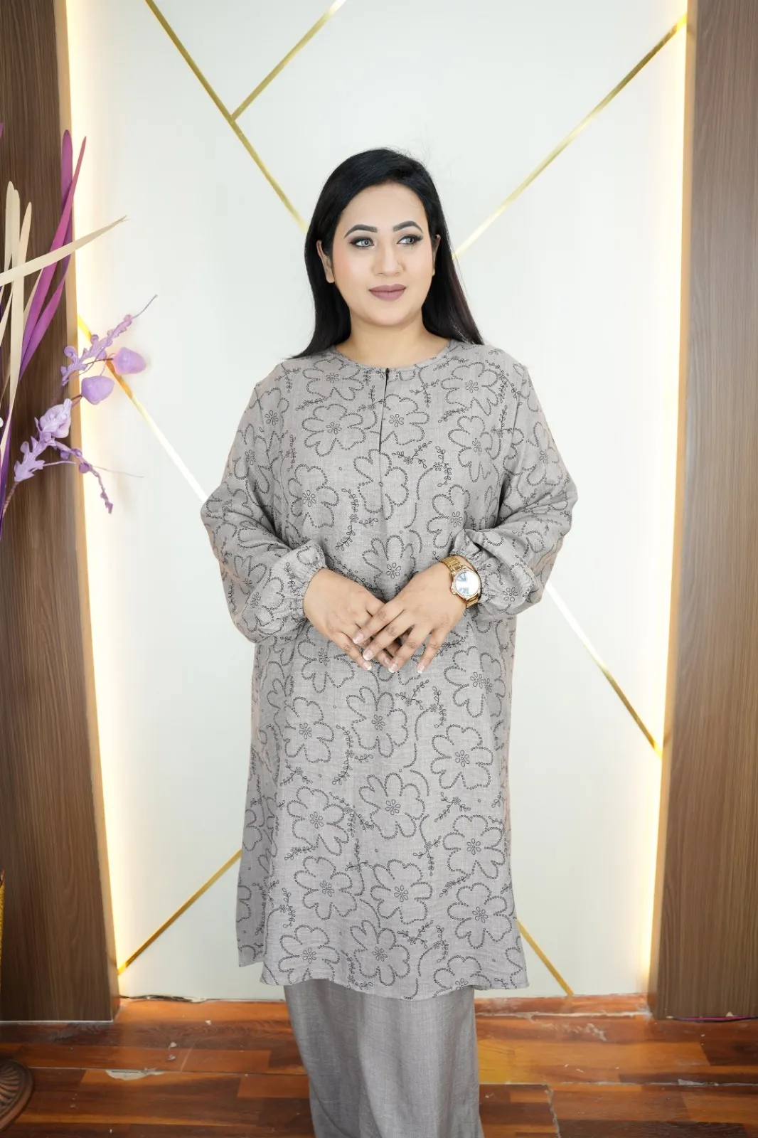 This Imported Thai Co-Ords Set, crafted from premium Viscose Cotton fabric that feels soft, breathable, and lightweight. The elegant all-over print design and full sleeves create a modern, fashionable look suitable for everyday wear, outings, or casual occasions.