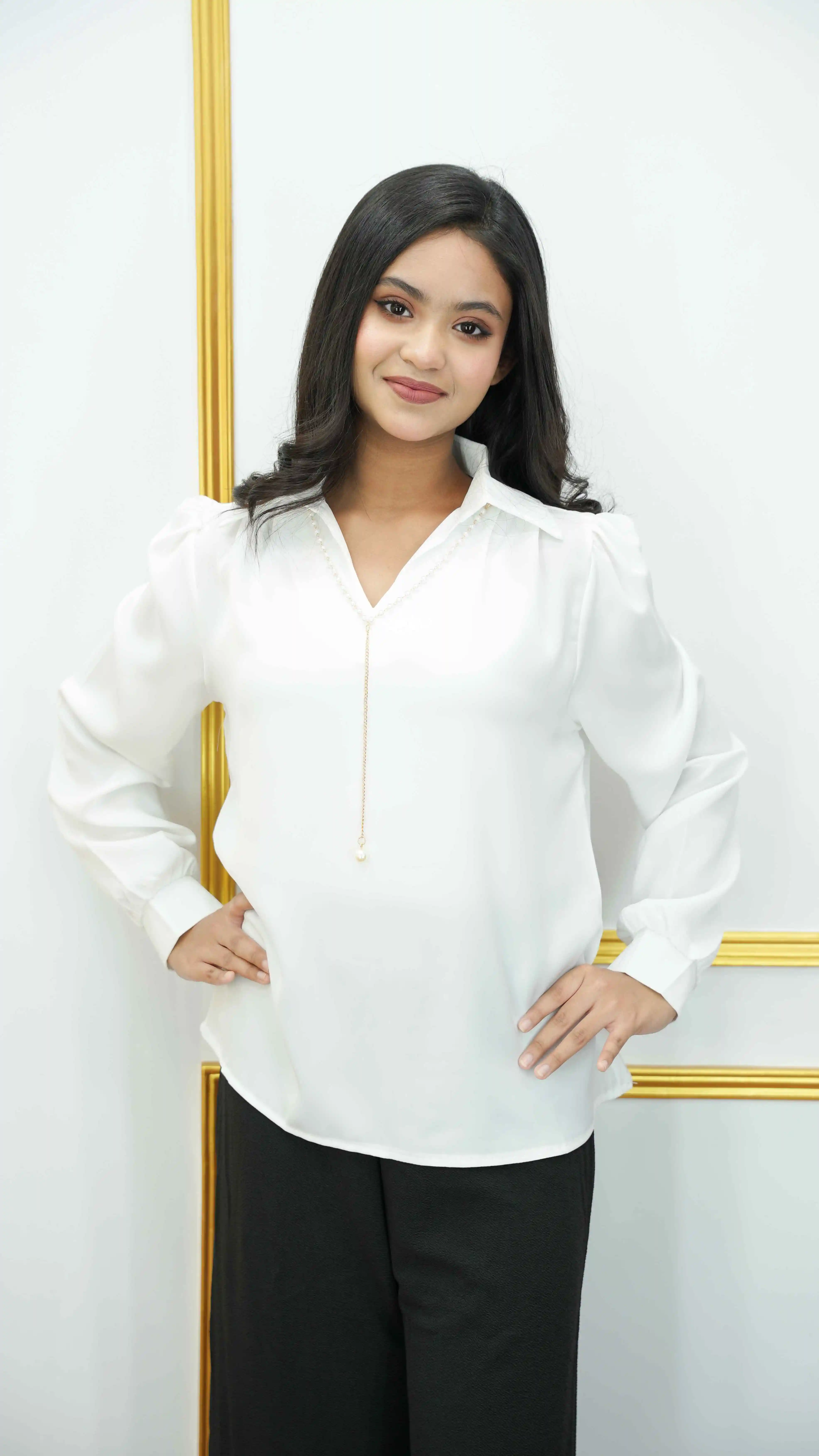 Elegant Thai Imported Tops - V-Neck with Chain Fre...