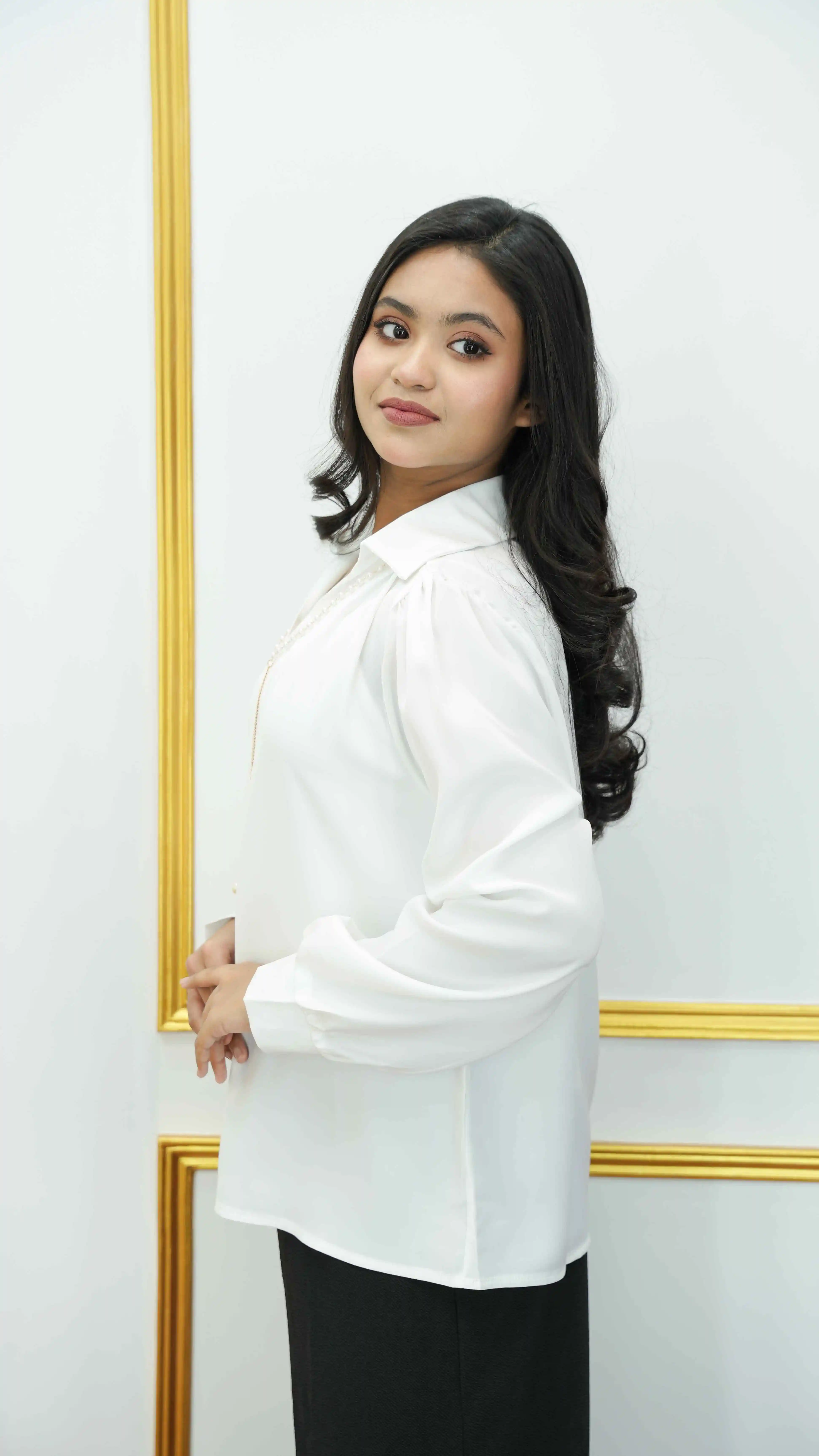Thai imported premium chiffon top that perfectly blends elegance and contemporary style. Designed for the modern woman who values quality and sophistication, this versatile piece is ideal for both casual outings and formal occasions.