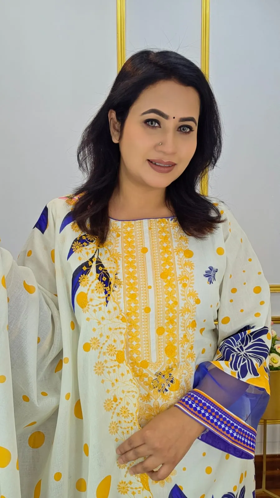 This elegant Unstitched Three Piece Set, crafted from high-quality pure cotton fabric for superior comfort and breathability. The dress features a beautiful digital print enhanced with delicate embroidery work, creating a perfect balance of style and sophistication.