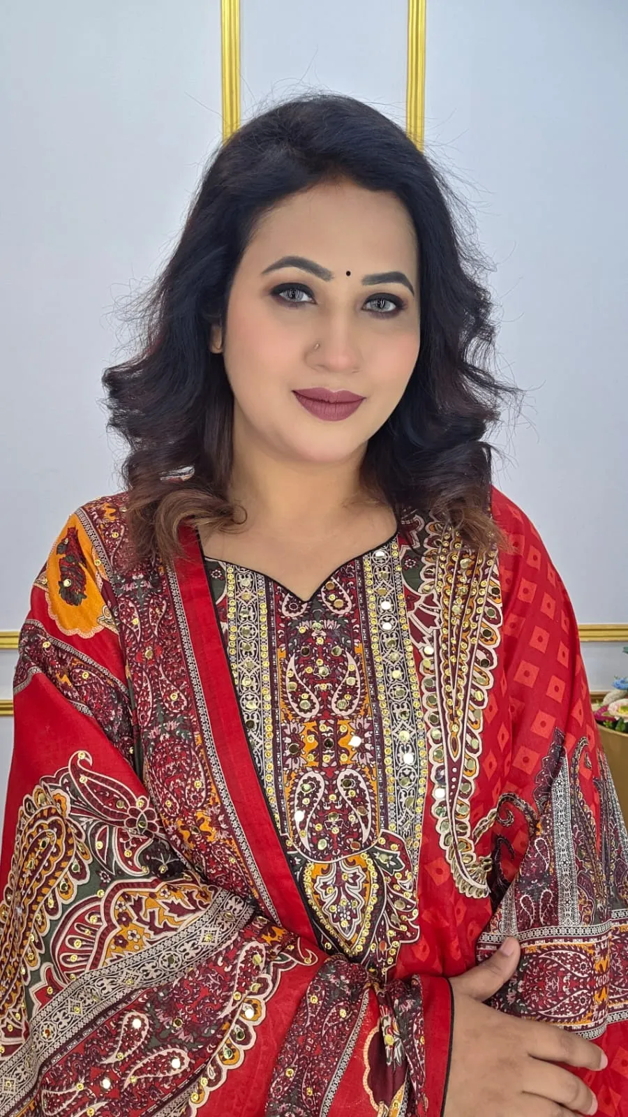 Print: Vibrant digital print on body and orna
