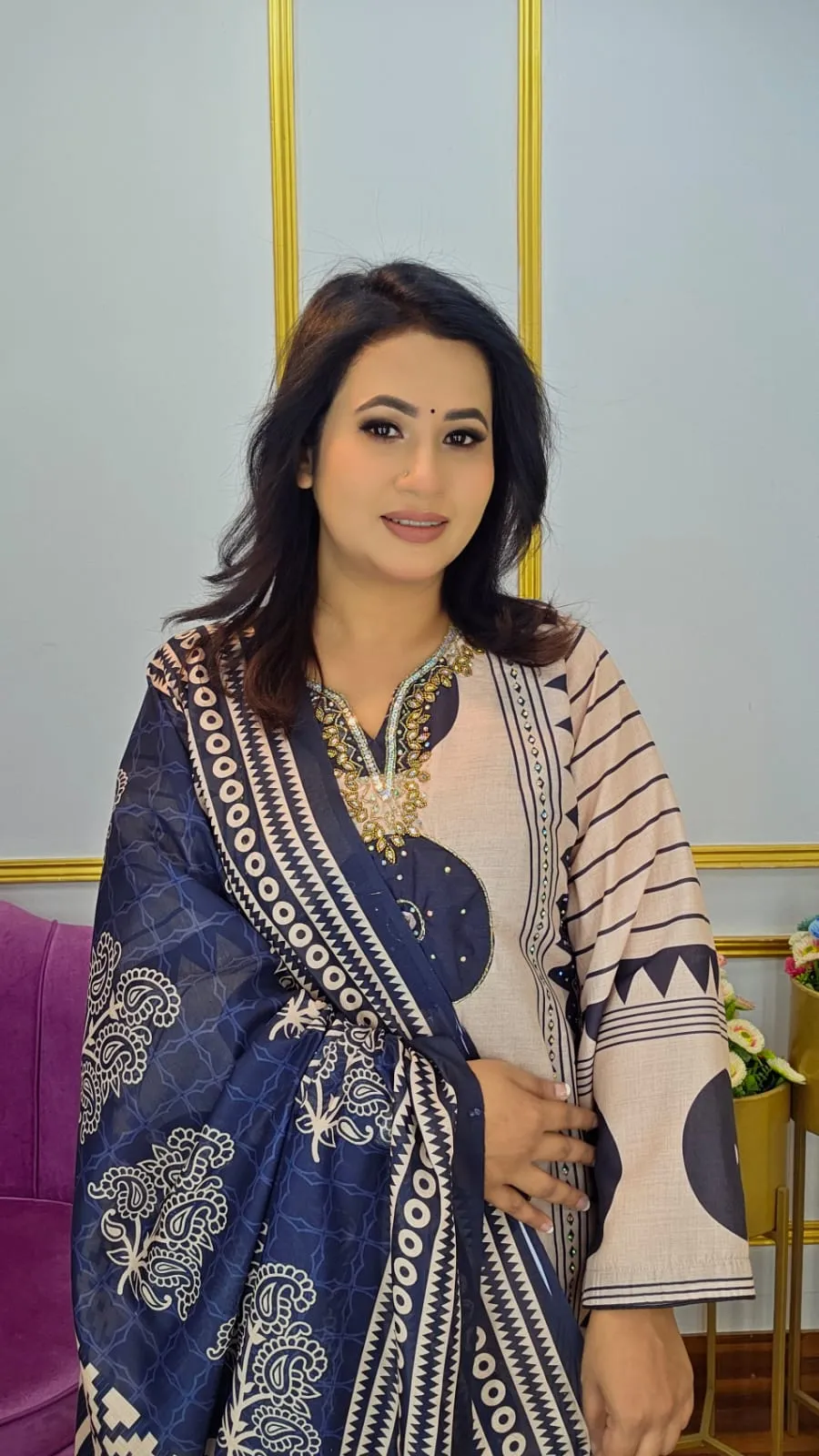 Design: Digital Print with Sequin & Boring Embroidery Work